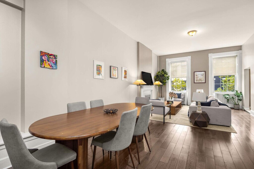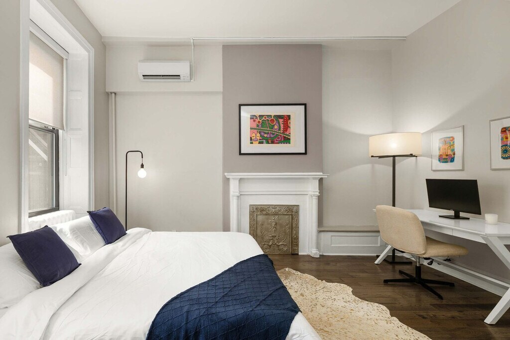 Feel at home in this full-floor residence set in a historic, landmarked Greenwich Village townhouse, offering a rare sense of privacy and scale in one of Manhattan’s most coveted neighborhoods. Bathed in natural light and framed by original architectural details, this home blends timeless character with the energy of the city and features soaring ceilings and its own private terrace. Anchored by an original fireplace mantel, the grand and lofty living room features soaring ceilings and oversized windows that perfectly frame the MacDougal-Sullivan Garden row houses. This space is adorned with art from the building owner's personal collection, as well as designer furniture from brands like RH, Arhaus, CB2, and West Elm. The large, windowed kitchen is outfitted with stainless steel appliances, a counter bar for casual dining, and generous cabinetry for effortless storage. This home is equipped with A/C, high-speed Wi-Fi, access to on-demand wash-and-fold or in-basement laundry shared with only one other person, and the option to request specialty services. A concierge service can coordinate cleanings and private events. Private chefs and excursions can be scheduled. This one-of-a-kind, art-filled loft sits on one of the best blocks in Greenwich Village, just steps from Soho, the West Village, and the best of lower Manhattan. Utilities are included in the listed price (Wi-Fi, electric, heat, etc). Excessive use of A/C (exceeding $250/month) will be billed back after move-out. Smoking is not allowed on the property. [SI]