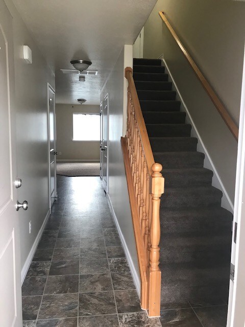 A beautiful two-story townhome in a central location! This unit will be move-in ready by the first week of December and is available for walkthroughs starting Sunday, November 30, 2025. The main level offers a full kitchen with all appliances included: fridge, stove/oven, built-in microwave, and dishwasher. You’ll find the living room, French doors opening to your private patio, space for a kitchen table, a half bath, pantry, and garage entrance. Upstairs features two large bedrooms, each with its own ensuite bathroom (with tubs), plus a convenient laundry room, two hall closets, and your furnace & water softener tucked in. The home is also equipped with an efficiency thersmostat . Located within walking distance to Mountain View Elementary School and a Walmart Market inside a full shopping center — so daily errands are super easy. You’re also less than a 5-minute drive to Weber State University – Davis Campus, Highway 89 & I-15 for quick regional access. The neighborhood is noted for being quiet, family-friendly, with well-kept yards, sidewalks and a sense of community. No smoking, vaping or controlled substances. No pets. Deposit is $1,735 ($400 non-refundable). Included utilities: HOA, water, sewer & garbage.