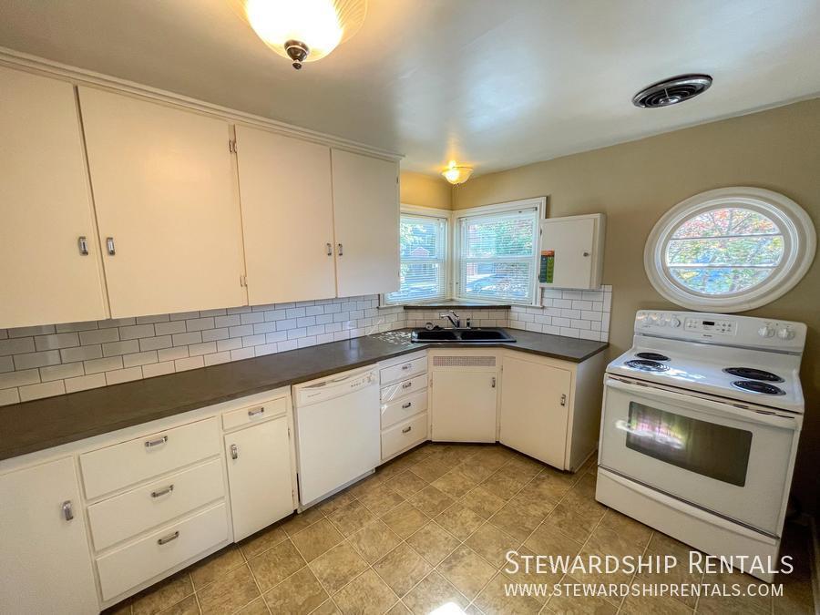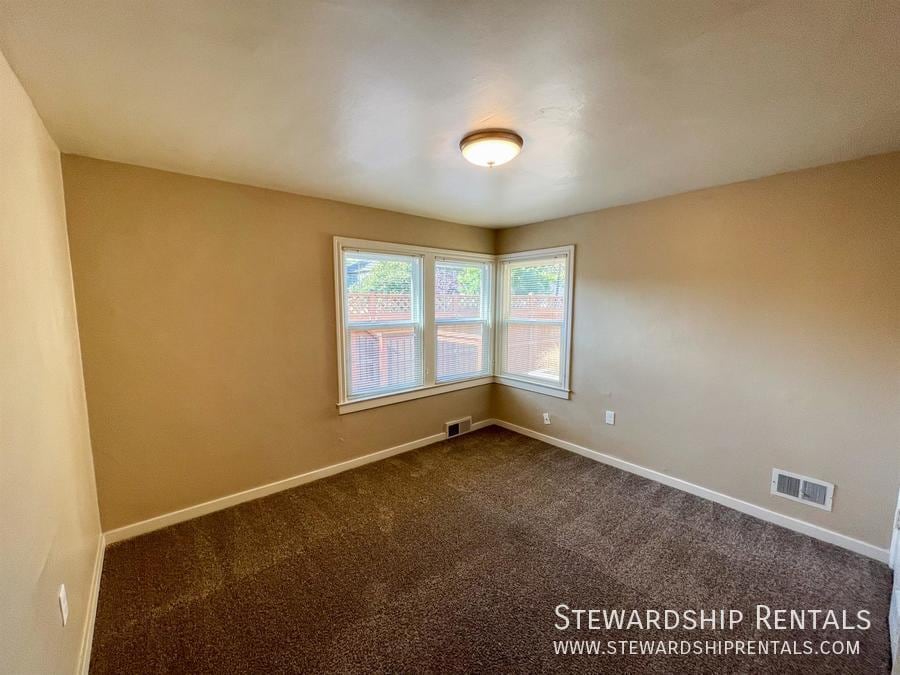 Spacious home in highly popular West Campus Area. Hardwoods floors, light filled kitchen, living area, and large bedrooms. Just blocks to campus, Safeway, Starbucks, bike paths, bus lines, restaurants and more. $360 monthly utility fee covers water, sewer and electric. Residents are responsible for garbage. *Properties are only shown to approved applicants* No application fee! For more information or to apply please go to Carpet Close To University Of Oregon Driveway Electric Baseboard Heat House Pets Allowed Vinyl Windows Yard Care Provided
