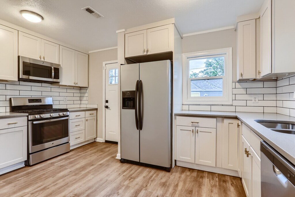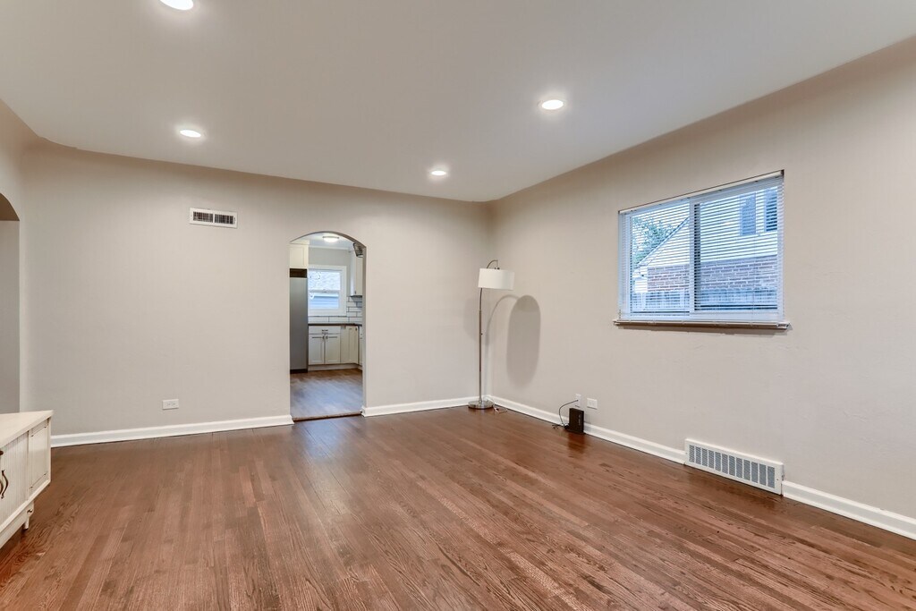 Remodeled two bedroom 1 bathroom East Colfax single family home. This is a great home with lots to offer. Beautifully updated kitchen with remaining classic touches like hard wood floors and two tone painted cove ceilings. For more information or to schedule a showing please contact Chris Martinez with J & M Realty at Looking to start with a one year lease, damage deposit, equal to one month's rent, and pets permitted case by case basis. Tastefully remodeled 2 bedroom 2 bathroom in East Colfax across the street from McNichols Park and close to to Central Park and the Stanley Market place. This property has lots to offer including a fenced in back yard, two car detached garage, small front, patio and a great just across the street.