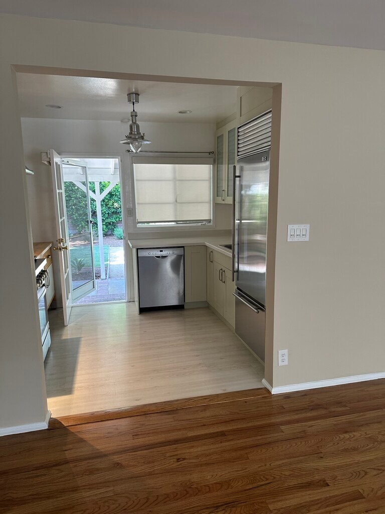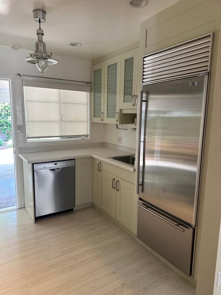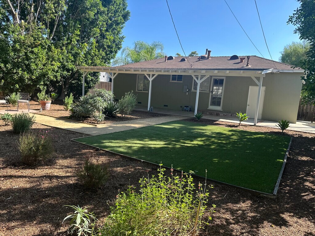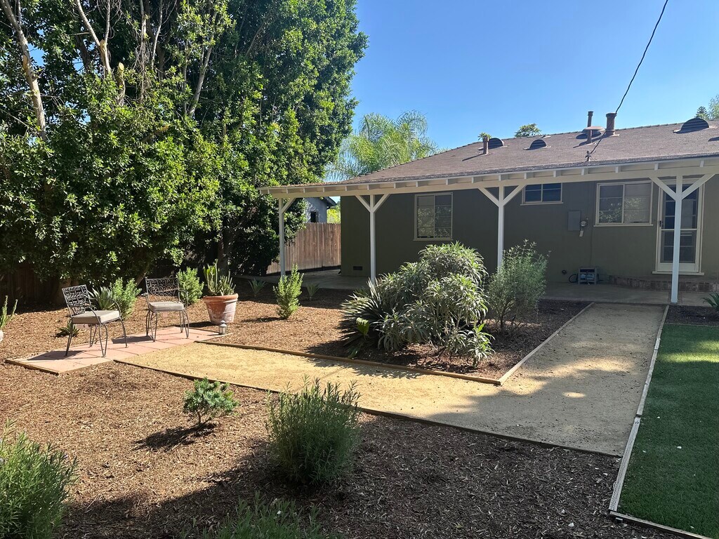 Charming single family home in the heart of Encino. This naturally lit and sunny 2-bedroom, 1 bath features a stunning gourmet kitchen with high-end appliances: Sub-Zero fridge, new commercial quality range and a Bosch dishwasher. Whip-up your favorite Instagram-worthy dishes and showcase them atop of pristine white Corian-countertops surrounded by gorgeous custom cabinetry. Open the kitchen backdoor to a beautifully landscaped, spacious and very private fenced-in backyard. A covered pergola provides the perfect opportunity for alfresco dining. After a busy day, don't miss the chance to unwind in the newly remodeled, spa-like bathroom. The attached, newly renovated and insulated garage includes a washer-dryer with storage. While, you could park your car here, this bonus room can also be used as an office or hobby space. Additional amenities include hardwood floors throughout the home. Both bedrooms feature closets with built-in shelving, plus there is a floor to ceiling hallway closet to accommodate all of your storage needs. Last but not least, this home is fully equipped with central heat and air and recessed lighting. A 2-car driveway provides parking just steps away from the front door that overlooks a newly manicured, drought-tolerant front yard. Spacious back yard is completely fenced in. It too features a drought-tolerant landscape with an artificial turf installation - ideal for a family with children or pets. This convenient location is walking distance to Emelita Elementary School and a stone's throw to one of the best dog parks in the San Fernando Valley. It is also less than a mile from Trader Joe's and the 101 Freeway.