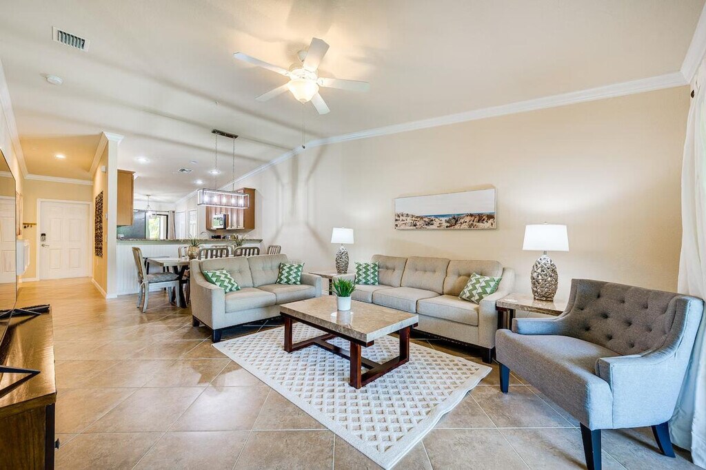 The advertised rate of $7,667/month is the lowest available price, based on a 1 month(s) stay with a move-in date of April 26, 2026. Rates vary depending on the duration of stay, season, and other parameters. For exact pricing and additional pricing components, please visit our website and enter your desired move-in and move-out dates. The rate is applicable when billed upfront; it can be higher if billed in multiple payments. Feel at home in this 2-bedroom, 2-bath condo in Bonita Springs, FL, located in the Bonita National Golf and Country Club community. This second-floor unit requires stairs to access. This condo boasts an airy interior with all the comforts of home, including access to community amenities. It features screened porches, outdoor seating, and an outdoor dining area. Inside, you'll find smart TVs with cable, dining tables, an open floor plan, en-suite bathrooms, and a desk workspace. The full kitchen is equipped with a dishwasher, coffee maker, microwave, stove/oven, dishware and flatware, an ice maker, refrigerator, toaster, and cooking basics. A washer and dryer are also available for your convenience. Enjoy access to the clubhouse, outdoor pools, grilling area, tennis court, restaurants, fitness center, and golf course with an optional membership transfer fee of $532. A designated parking spot is available for one vehicle, with an additional parking lot available on a first-come, first-served basis. Mandatory social membership transfer fees are required to use the community amenities, with prices based on the length of your stay: 1 month = $426, 2 months = $346.13, 3-5 months = $319.50, and 6+ months = $266.25. This price covers 2 guests only; additional guests will have to pay $15 each for a 2-week pass, with the price adjusted based on the length of your stay. Located in the Bonita National Golf and Country Club community, this condo offers access to area hotspots like Wonder Gardens and Bonita Beach Park. Guests must be at least 25 years old to book. A photo ID will be required upon check-in at the main clubhouse (Admin Office) to obtain access cards. Guests will need to read and submit required forms to the Guest Contact 20 days prior to arrival. This property features a Ring doorbell device with an exterior security camera facing the front outdoor entry. No pets are allowed. Smoking, events, parties, or large gatherings are prohibited. This remote work-friendly condo includes a desk workspace. [SI]