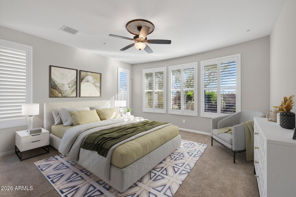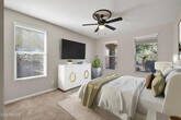 Beth RiderWelcome to Trilogy at Verde River! This corner-lot home with a desirable floor plan borders a common area and features a charming front patio complete with a beautiful iron front door. The layout includes two bedrooms, two bathrooms, and a den. The open kitchen offers granite countertops, a large island with a breakfast bar, and a walk-in pantry. Dual sliding doors create a seamless indoor-outdoor connection, including a multi-panel slider from the dining room that opens to a screened-in patio for added privacy and shade. The primary suite features shutters and a luxurious ensuite with granite dual sinks, a tiled shower, and a walk-in closet with built-in drawers. Enjoy the Sonoran Desert backyard with serene desert landscaping. Additional features include reverse osmosis, a water softener, a security system, and built-in garage cabinets. The laundry room offers abundant cabinetry, a hanging rod, and two built-in desks. Do not miss out on this Verde River gem! The amenities at Verde River are World Class with Tom Lehman inspired eighteen-hole Golf course, tennis courts, 12 pickleball courts, and bocce ball, heated lap pool and Resort style swimming pool, hot tub, Afterburn fitness center, Helen's demonstration Kitchen for cooking classes and a 7.5 acre dog park. The community center has casual poolside dining at Eddy's Diner and gourmet dining at award-winning Needle Rock Kitchen and Tap, Alvea Spa with full-service Salon and Spa amenities, Art Loft and events center. Trilogy at Verde River is adjacent to the Tonto National Forest and is situated in the middle of miles and miles of hiking and biking trails.