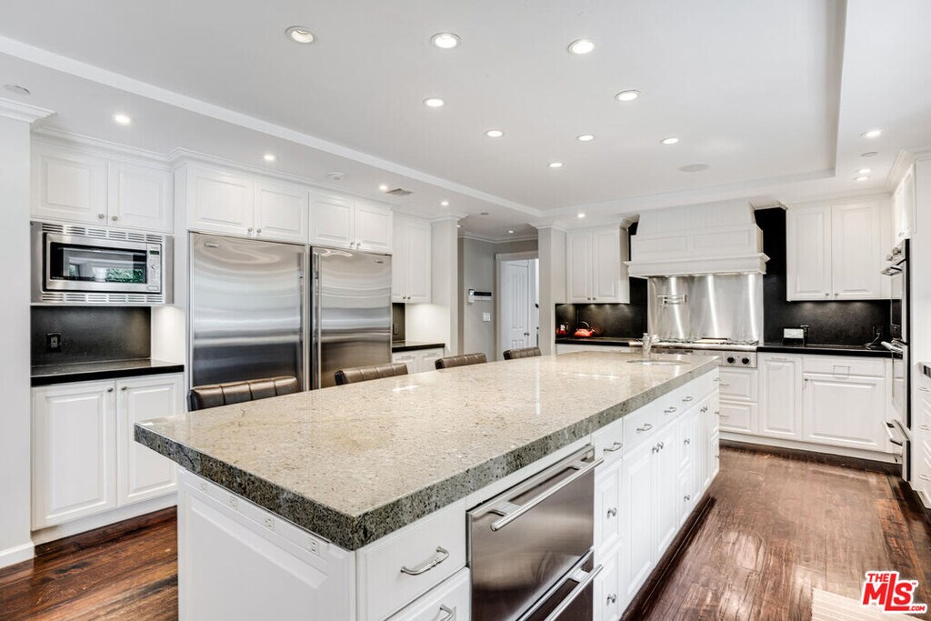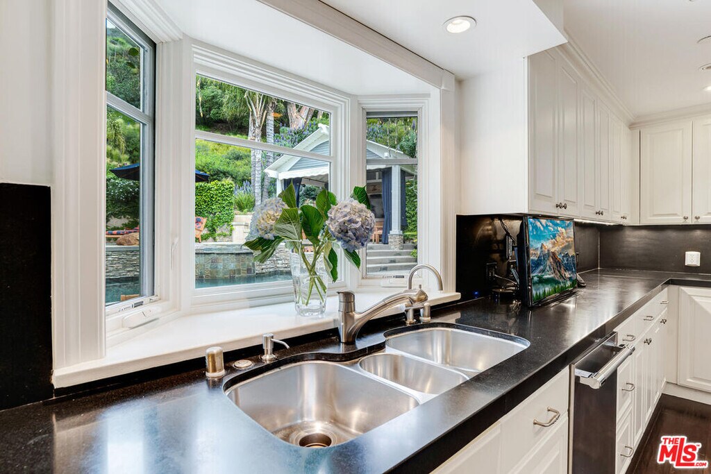 Welcome to this luxurious 5bed / 4.5 bath, 4,600 sq. ft. residence tucked away in a tranquil cul de sac within the esteemed Pacific View Estates of Pacific Palisades. This stunningly renovated property boasts captivating ocean vistas and encompasses 5 bedrooms (plus 2 offices) and 5 bathrooms, ensuring ample space for both family and guests.Upon crossing the threshold of the gated estate, you'll be greeted by a grand foyer adorned with soaring ceilings and an exquisite staircase leading to the upper level. The main floor unfolds into an expansive open-concept living space bathed in natural light streaming through expansive windows, creating an inviting and airy atmosphere. The spacious living area features a welcoming fireplace and seamlessly connects to a dining space, perfect for leisurely moments or entertaining gatherings.The heart of this home lies in the chef's kitchen, a culinary haven equipped with top-of-the-line amenities including a baking station, wine fridge, sub-zero refrigerator, and freezer drawers, complemented by elegant granite countertops and ample cabinetry. The kitchen island offers additional prep space and serves as a casual dining spot.A true highlight of this residence is the remarkable wine cellar, providing an elegant setting to display your prized wine collection. Upstairs, discover 4 bedrooms and 2 offices, ensuring privacy and comfort for every member of the household. The primary suite epitomizes indulgence, featuring a spacious bedroom with a cozy sitting area, a private deck, an office space, a lavish spa-like bathroom boasting a soaking tub and separate shower, and a generous walk-in closet.Step outside into your own private oasis encompassing a sprawling 20,000 sq ft backyard complete with a refreshing pool, rejuvenating spa, and an outdoor living room featuring a television and heaters, offering the perfect setting for relaxation or entertaining guests. The outdoor space is thoughtfully designed with ample seating, a built-in BBQ, a wood-burning outdoor pizza oven, and a fully-equipped kitchen, creating an idyllic spot to savor the Southern California climate. Additionally, revel in the serenity of your private 180-degree ocean view deck situated behind the home.Storage is abundant with a 3-car garage providing ample space for your vehicles and belongings. Conveniently located just a short drive from premier dining, shopping, and entertainment destinations, this residence offers the quintessential coastal lifestyle experience in Los Angeles.Seize the opportunity to call this exceptional abode your own and experience the epitome of luxurious coastal living. MLS# 25572713
