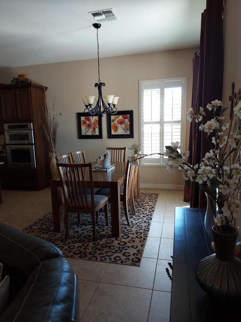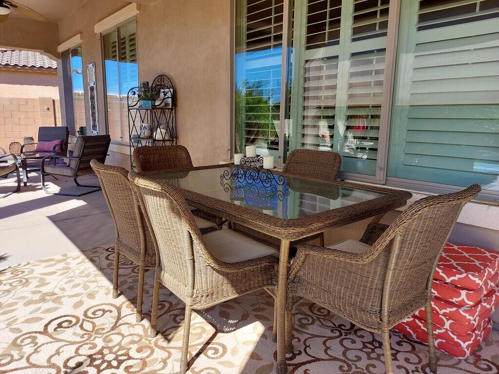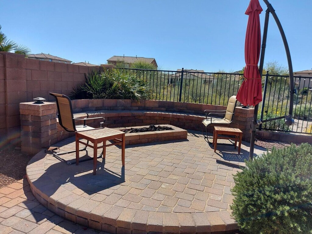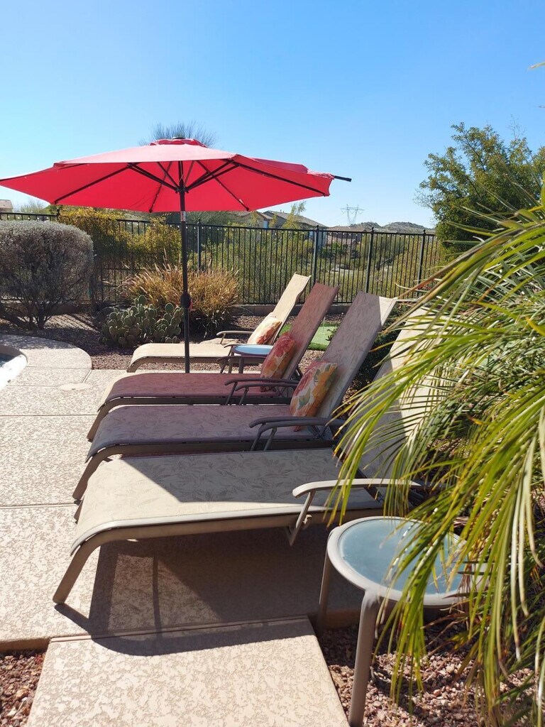 Available until 10/31/26 Gorgeous fully furnished house in amenity rich Estrella Mountain Ranch! Enjoy lakes,gyms,pools,basketball,tennis courts,and pickleball courts for just a one time $100 fee. This home has 4 bedrooms and 2 baths,a putting green,firepit,and a private pool! Many upgrades including granite and SS appliances. Very nice furnishings include 2 king beds,a queen,and 2 twin beds. No pets Tenant must maintain tenant insurance during their tenancy.