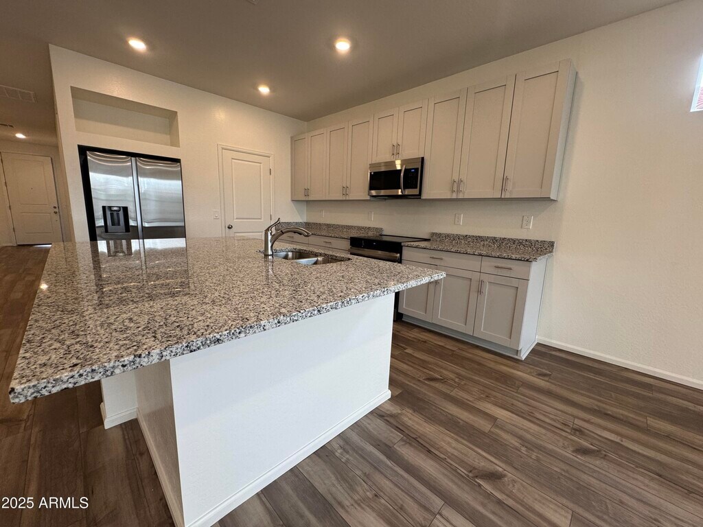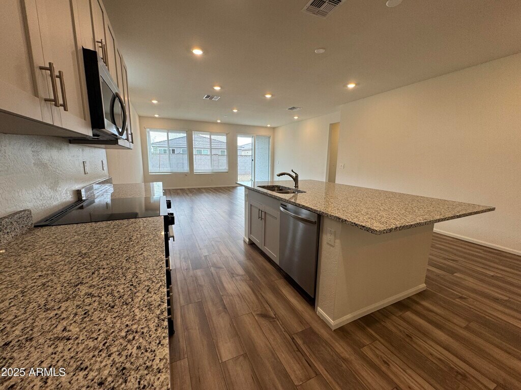 **MOVE IN SPECIAL - 2 FREE WEEKS RENT IN OCTOBER 2025! BEAUTIFUL 4 bed/3 bath home in Surprise,Arizona w/ a thoughtful,spacious split floor plan! Gourmet kitchen features a HUGE island,granite countertops,shaker cabinets,stainless steel appliances,and a walk-in pantry! STYLISH laminate flooring flows through the main living areas,with brand NEW carpet & blinds throughout.! Primary bedroom includes an OPEN bathroom AND MASSIVE walk-in closet! Enjoy a fully finished backyard with an extended covered patioPERFECT for your morning coffee! Washer and dryer included! 2.5-car garage w/ an electric car plug-in! Enjoy access to a vibrant community featuring a sparkling community pool,playgrounds,basketball courts,pickleball courts,cornhole,horseshoes,scenic BBQ/Picnic