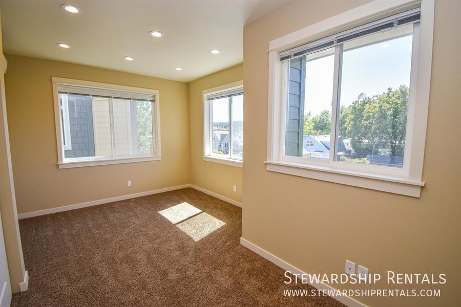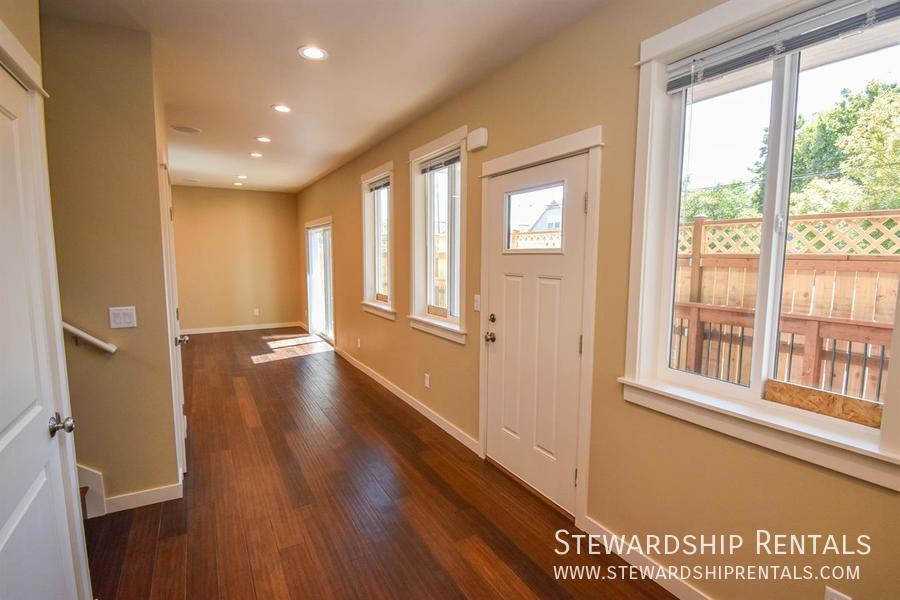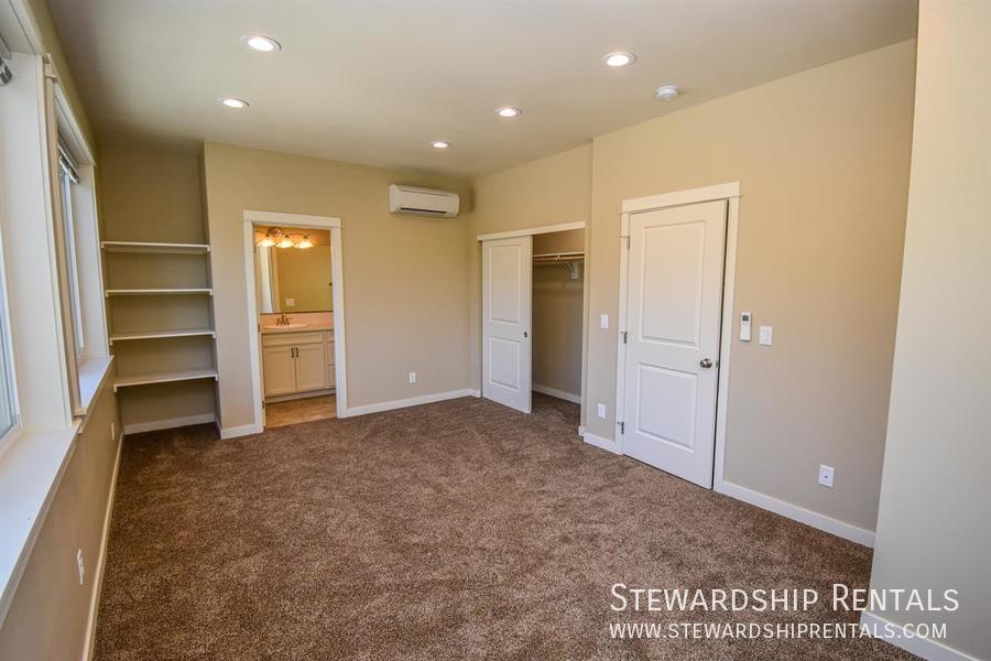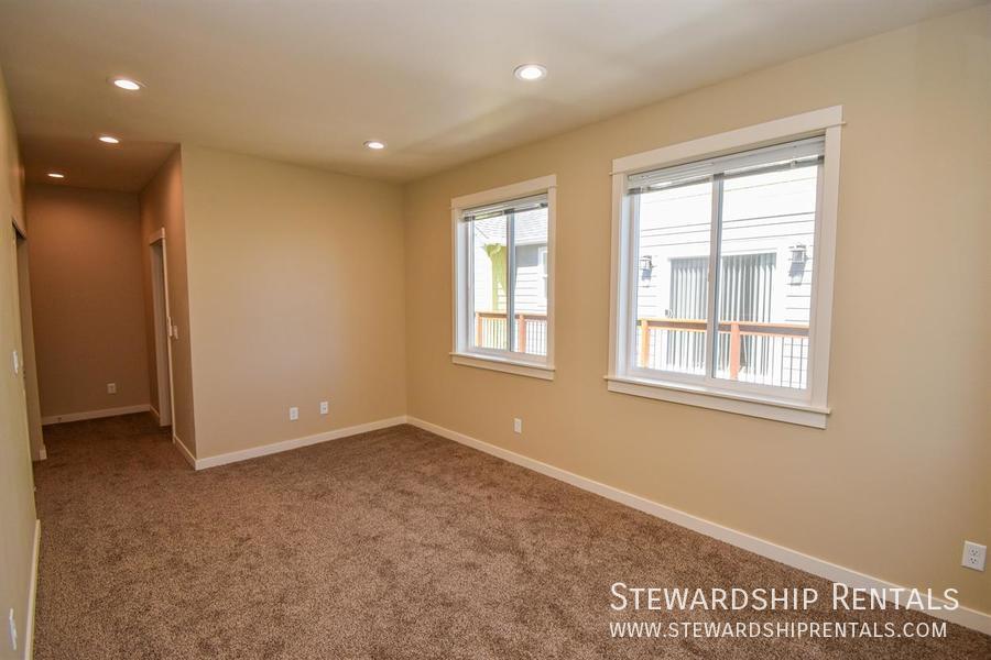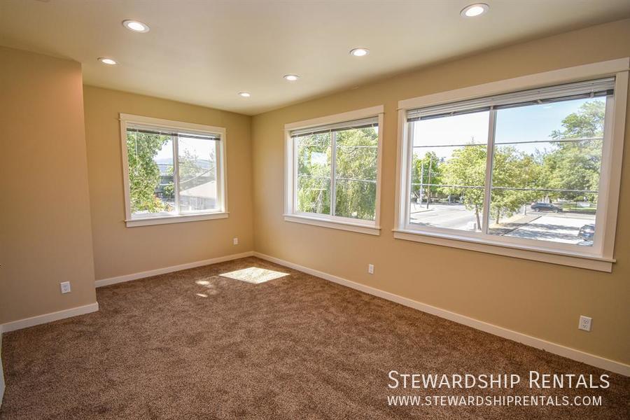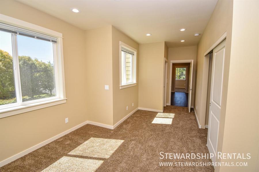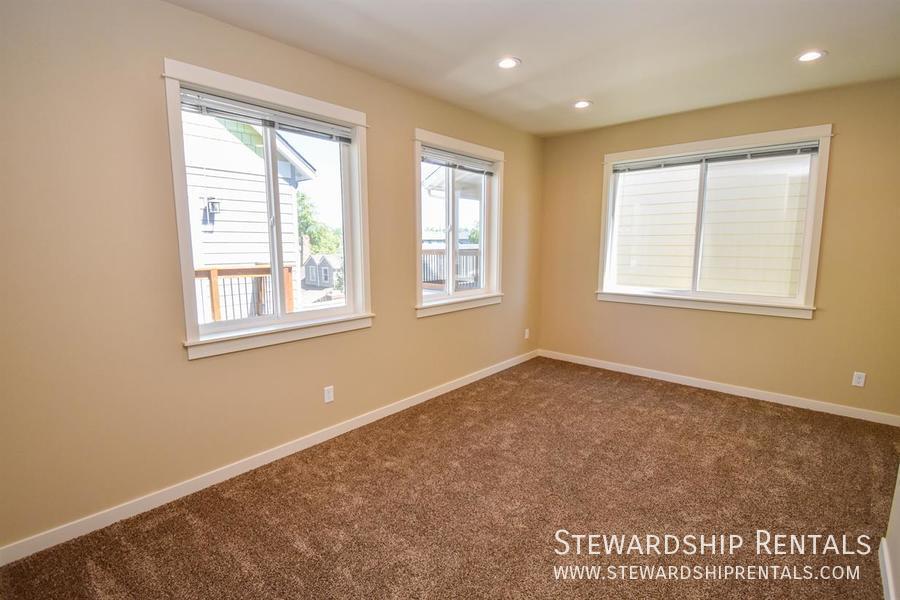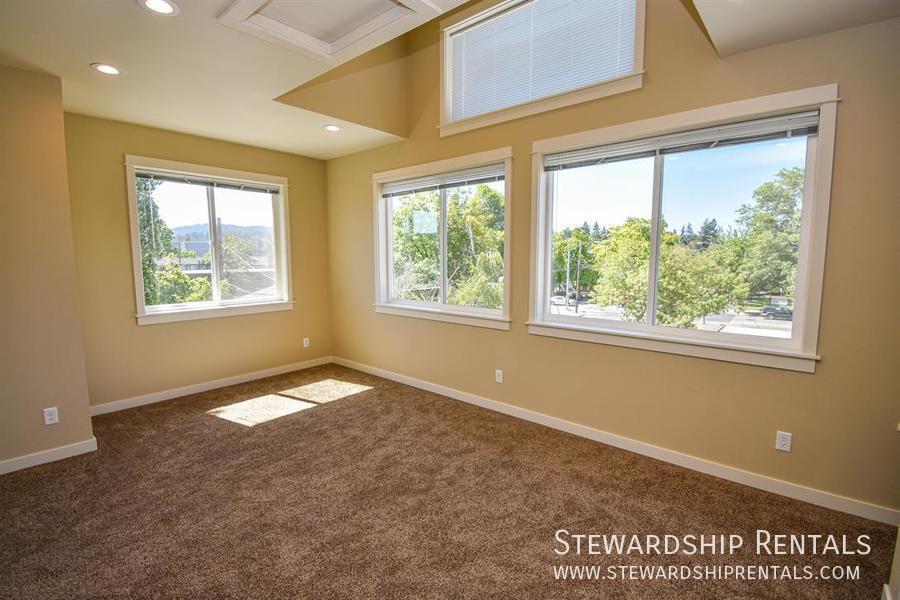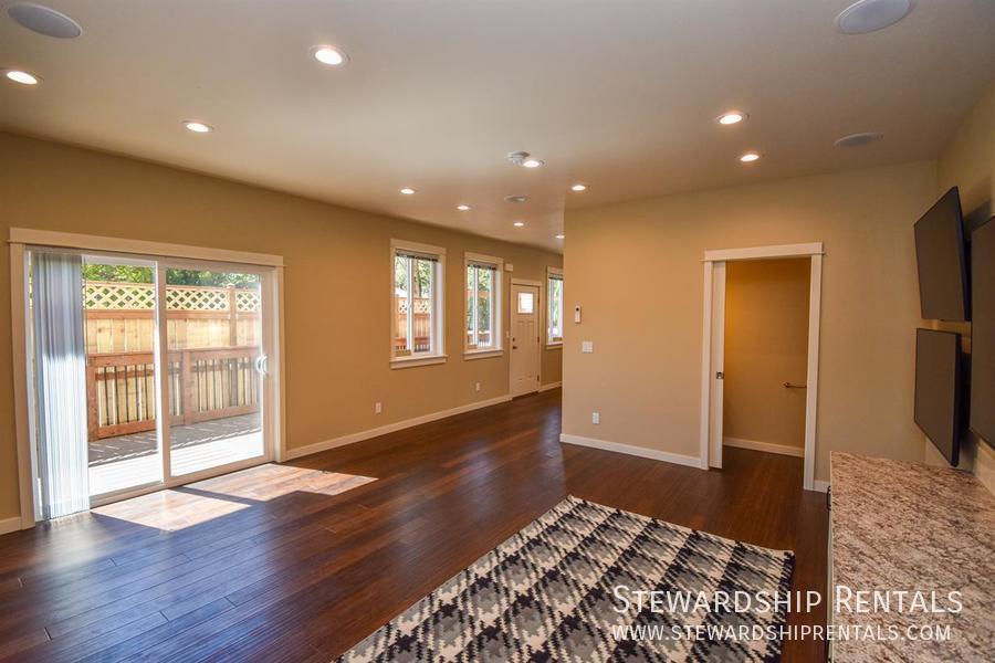 5 bedrooms with an additional bonus room in the emerging "QUACK ALLEY" campus neighborhood. Perfect house for roommates, each bedroom is a suite and comes with its own bathroom. This new construction also features a built-in dining nook, FIVE big screen TVs with surround sound, hardwood floors, balconies on the 2nd and 3rd floor, stainless steel appliances and much more! 2 parking spaces available onsite and an additional space available in the neighboring lot. Residents are responsible for all utilities: water, sewer, garbage and electricity. Property shown with approved application only! NO APPLICATION FEE. For more information or to apply visit Carpet Close To University Of Oregon Hardwood Floor House Limited Free Parking Pets Allowed Private Bathroom Vinyl Windows Washer & Dryer In Unit