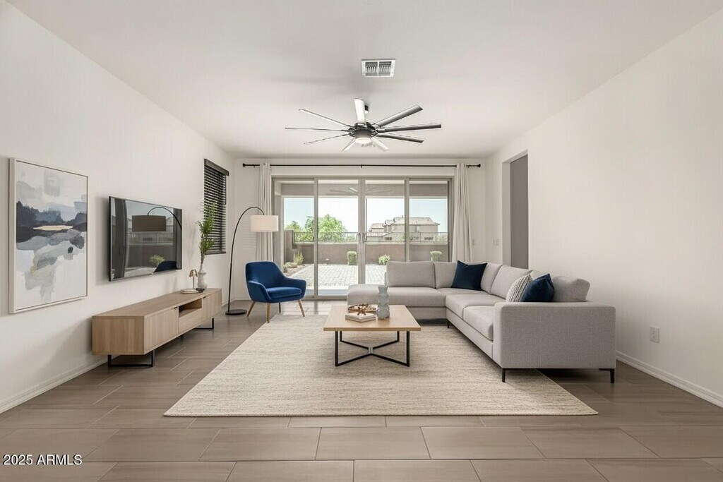 Beautiful move-in ready home! This thoughtfully designed residence offers modern comfort,versatile living spaces and a prime location- perfect for families,professionals or multi-gen households. Open-concept living with gourmet kitchen featuring quartz countertops,luxurious owner's suite with sizeable walk-ins in every room and with two versatile flex roomsperfect for a home office,gym,or teen space. The backyard is fully finished with pavers and custom planters,ideal for relaxing or entertaining. Conveniently located near I-10 and Loop 303,with easy access to Estrella Mountain trails,top-rated schools,shopping,dining,and entertainment.