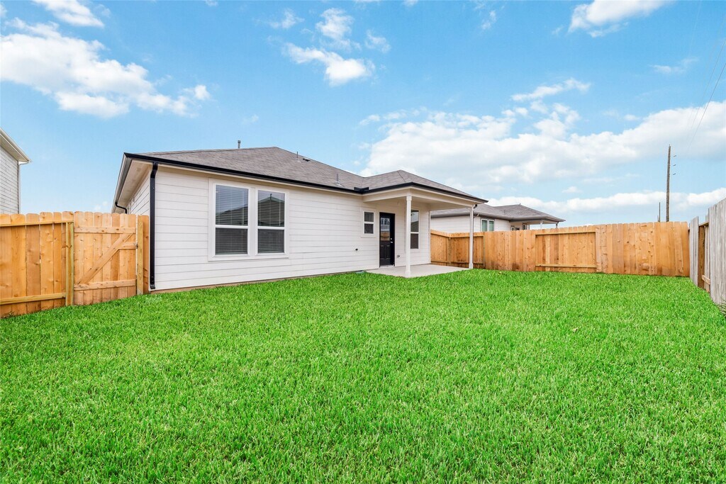 This 3-bedroom,single-story home is ready for move in. The front study,with its large window and beautiful glass French doors,sets the tone for a bright and welcoming space. The family room seamlessly connects to the open kitchen and dining area,featuring a stylish island kitchen with granite countertops,and upgraded Whirlpool Stainless Steel appliances,including a 5-burner gas range. Washer,dryer,and refrigerator are all included for your convenience. The Owner's Suite is a retreat with a large walk-in closet,dual vanities and an oversized walk-in shower with ceramic tile surrounds. Enjoy luxury vinyl flooring throughout the home,with plush carpeting exclusively in the bedrooms. Outside,the fully fenced backyard comes with sod and an irrigation system. Conveniently located near US-290 and TX-99. Less than 15 minutes from the Houston Premium Outlets & a general hospital. Community amenities include a pool,basketball courts,playground and grilling/picnic area. MLS# 35418690