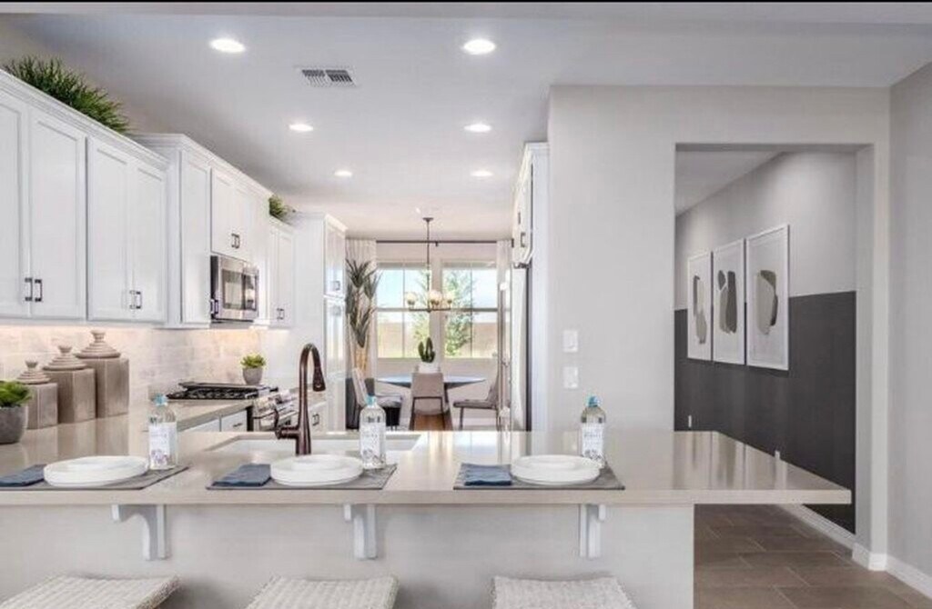 Absolutely Stunning former model highly upgraded!! This home features 3 bedroom, 2 baths, plus beautiful den or 4th bedroom 2 car garage with additional ceiling storage, in the new HIGHLY sought out community Las Brisas. Kitchen is light and bright featuring Beautiful Skylar recessed panel white cabinets, GE Cafe Stainless Steel Appliances including gas range, quartz counter tops, beautiful stone backsplash and Oil rubbed bronze fixtures through out the home. Master bath featuring oversized walk-in shower with a Voss overhead rain shower, marble with oil rubbed bronze framing and clear glass, quartz counters and beautiful white vanities. Guest bath featuring wood tile, quartz counter, oil rubbed bronze fixtures. This home has 8 ft doors and surround sound great room, master bedroom and patio! Resort style backyard featuring, covered patio, built-in stainless-steel BBQ island, paver dining area, outdoor lighting and Mountain views to top it off an amazing putting green! Park and picnic area in this amazing development! Brand new GE washer and dryer included, security system, epoxy garage floors and added storage, this home has it all and more! Close to freeway, dining, shopping, and local attractions! Home is unfurnished!! Request a tour today!! Amazing 4 bedroom, 2 bathroom house in Goodyear. Amenities included: central air, central heat, dishwasher, stainless steel appliance, updated kitchen, updated bathroom, storage, washer dryer, laundry in building, and yard. No Utilities included. Is pet friendly. Date Available: Dec 15th 2025. $1,500/month rent. $2,395 security deposit required. Please submit the form on this page or contact William & Evie Kypreos at to learn more. This property is managed by a responsible landlord using Avail landlord software.