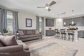 Welcome home! This almost new 4 bedroom,3 bathroom home features premium tile flooring,neutral color palette in an open floorplan. The kitchen offers high end appliances,granite countertops,luxe cabinetry,and overlooks living and dining area with access to back patio. Upstairs enjoy bonus space in the loft,perfectly sized secondary bedrooms and a master retreat with dual sinks,oversized shower and spacious walk-in closet! The backyard is complete with covered patio extended with custom pavers + turf,and low maintenance plants-perfect for entertaining! All of this in the sought-after city of Goodyear! Around the corner from neighborhood park and playground. This community is close to everything Goodyear and Phoenix has to offer!