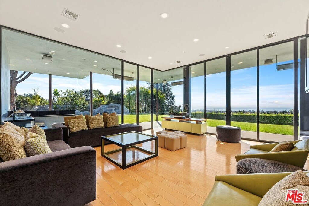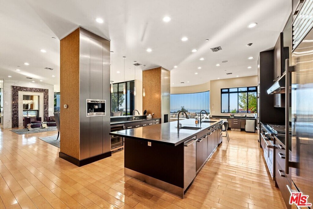 Incredible opportunity to live in a resort-style home with the most amazing Pacific Ocean and City Views. This bright, open-planned house is in a very serene area of Brentwood. The gourmet kitchen features chef-grade appliances including a Sub-Zero refrigerator and Miele espresso machine. There is also a huge wine refrigerator. Spacious living, dining and family room on the first floor with an onyx stone-framed dual fireplace. The primary bedroom has a walk-in closet. 4 en-suite bedrooms located upstairs with a spacious 2nd family room. This home is minutes away from Brentwood Country Mart, exclusive fine restaurants and a shopping center. Experience the true leisurely life. Easy to show. MLS# 25607775