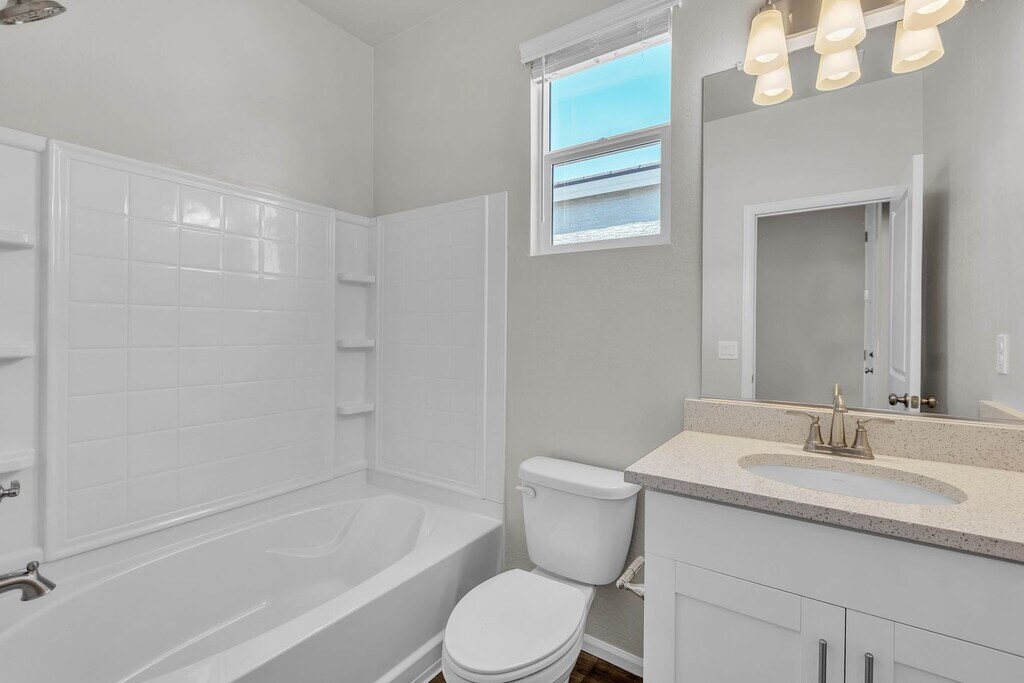 Be the First to Live Here Brand New 3-Bedroom Home in Surprise. This beautifully built, brand-new construction home offers modern comfort, energy efficiency, and stylish design. This 3-bedroom, 2-bath home spans 1,545 sq. ft. and is located in a peaceful, up-and-coming neighborhood in Surprise, AZ. Step inside and enjoy the bright, open-concept living space, perfect for relaxing or entertaining. The sleek kitchen features brand-new stainless steel appliances, quartz countertops, a large island with seating, and plenty of cabinet space. The primary suite includes a spacious walk-in closet and a luxurious en-suite bath with dual sinks and a walk-in shower. Highlights include: - Energy-efficient design - Spacious laundry room with new washer and dryer included - Low-maintenance desert landscaping - Attached 2-car garage - Private backyard ready for your personal touch Located near parks, shopping, dining, and quick access to Loop 303 for easy commuting. Enjoy the best of the Arizona lifestyle in a fresh, never-lived-in home. Available now schedule – your private showing today! Community Swimming Pools Dog Parks Master Planned Community Playgrounds Splash Pads Sports Fields And Courts Three Community Parks Walking Loops