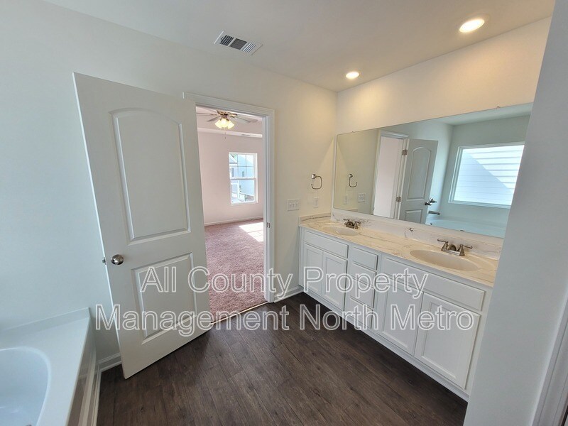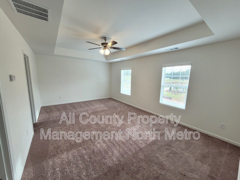 This rental listing is for the single-family home situated in the Castleberry Pointe subdivision. Built in 2024, this newer construction property offers ample square feet of living space consisting of four bedrooms and two and a half bathrooms. The interior features an open floor plan on the main level with hardwood flooring, granite countertops, and stainless steel appliances in the kitchen. The upper level includes an oversized master bedroom with a large walk-in closet and an en-suite bathroom featuring a separate tub and shower. Three additional bedrooms are located upstairs along with a shared full bathroom and a dedicated laundry room. The home is equipped with central heating and cooling, and an attached garage. Outdoor features include open porch at the front and private deck in the rear. The property is located near GA 400, providing proximity to the North Georgia Premium Outlets and major retailers including Kroger, Walmart, and Home Depot. This residence is served by the Dawson County School District. Up to two dogs and/or cats welcome under 25 lbs. This owner-managed property is exclusively listed by All County Property Management North Metro, which offers a streamlined leasing process with self-guided tours available.