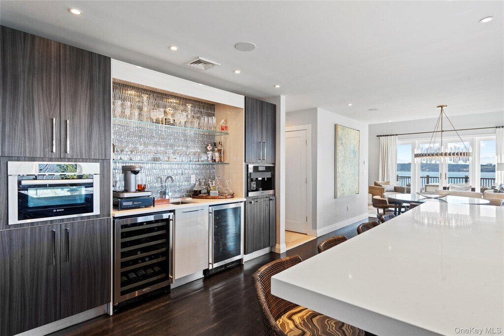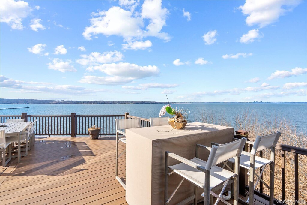Luxury Beachfront Retreat - what a way to live! You will feel like you are on vacation at this completely renovated gorgeous waterfront condo designed for entertaining in the heart of the Glen Cove/Locust Valley area better known as “The new Hamptons” complete with elevator. About an hour commute from Manhattan,this exciting eight-bedroom,seven-and-a-half-bath contemporary provides ample room,in pristine condition,for you to enjoy its three levels of luxury living space. Breathtaking vistas of Hempstead Harbor and Long Island Sound can be viewed through seemingly endless walls of glass,expansive decks,and private bedroom balconies. Its open floor plan,including glass balustrades on staircases and lofts,fills the home with water vistas. Located off a cul-de-sac,your future home offers ample parking for guests and a two-car garage for yourself. In the scenic and peaceful community of Water’s Edge,where small clusters of condos are woven in amongst lovely sprawling lawns dotted by mature trees,the home is just steps down to the waterfront,beach,and clubhouse. In another area of the complex,a pool,tennis court,and pickleball court are ready for your enjoyment. Double doors welcome your guests into a bright and inviting main level that boasts a fabulous eat-in cook’s kitchen with huge center island,high-end appliances,and a serving bar equipped to serve any beverage from cocktails to coffee. Windows overlooking the water extend the length of the space,through the spacious dining area,and into the sunny and welcoming living room with sliders to a huge sunny deck overlooking the water,Sands Point,a distant lighthouse,and the twinkling lights of New Rochelle. In the summer,you can watch yacht club regattas and in winter,enjoy the home’s two cozy gas fireplaces. Any season,you will be enthralled by gorgeous sunsets across the water. A hallway,running from the foyer’s powder room and mud/laundry room to the living room,leads to staircases and an elevator accessing upper and lower floors,and to the palatial primary suite offering privacy and serenity in its lavish bedroom with doors to the huge rear deck,built-in cabinetry and entertainment center,and a luxurious marble three-room primary bath boasting a large twin vanity,Roman tub,separate shower,and water closet with commode and bidet. A staircase ascending to the upper level features a clear-glass balustrade that continues across a spacious loft that provides incredible views of water,sky,and living room. This cozy seating area flows into a sun-drenched state-of-the-art gym with a large closet and full bath with shower. Across the landing,with glass balustrades overlooking the main level,are two spacious bedrooms,each with its own bath,closet,and balcony. For convenience,you can take the elevator or the stairs to the lower level. With its own second kitchen,and two entrances to the wraparound lower deck,it could serve as a delightful guest suite with three bedrooms with baths ensuite. Also on this level are a large utility room and a brick-and-glass-lined wine cellar that could also serve as an indoor garden. A few steps down from the hall,a fun recreation room will provide hours of entertainment with a pool table,fireplace,wet-bar,and glass doors opening to an immense covered deck overlooking the water. The comfort and amenities of this like-new home are augmented by its ideal location surrounded by so many historical and nature sites to see plus parks,beaches,boating,golf,mansion museums to explore,quaint village shops and restaurants,and an active nightlife. And don’t forget all the wonders and pleasures of nearby New York City. View 3D tour and floor plan. Based on information submitted to the MLS GRID as of [see last changed date above]. All data is obtained from various sources and may not have been verified by broker or MLS GRID. Supplied Open House Information is subject to change without notice. All information should be independently reviewed and verified for accuracy. Properties may or may not be listed by the office/agent presenting the information. Some IDX listings have been excluded from this website. Prices displayed on all Sold listings are the Last Known Listing Price and may not be the actual selling price.