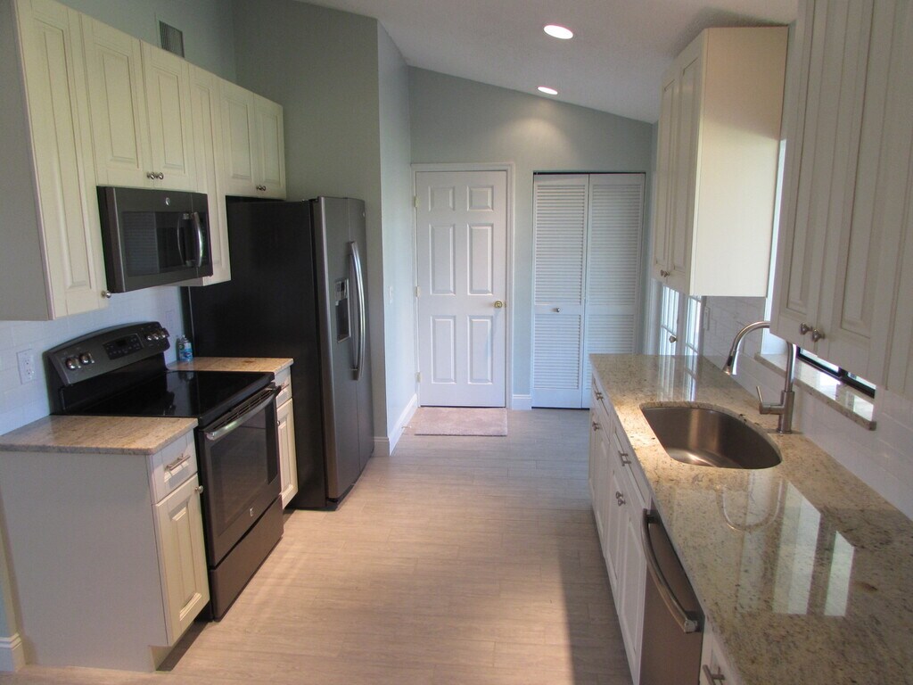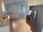 Open floor plan featuring, 3 bedrooms, 2 bathrooms, vaulted ceilings, breakfast nook, gorgeous kitchen with granite counter top including a breakfast bar and a pass-through to the covered patio, self closing 42"cabinets, high-end-GE stainless steal appliances. Amazing ceramic tile floor that looks like wood, carpets in all bedrooms. The master bedroom has a large walk-in closet. Great boat dock on 80 feet of canal frontage. Perfect for easy access to the intracoastal waterway. Recessed lighting. The back patio is now screened in (not screened in photos). This home is the perfect Florida getaway, come see it, you will love it. NO PETS!! Requirements: Minimum of a 600 credit score is required on all applications. Rental History will be verified. Quick and easy application process