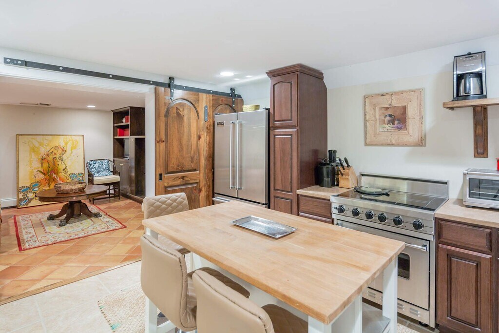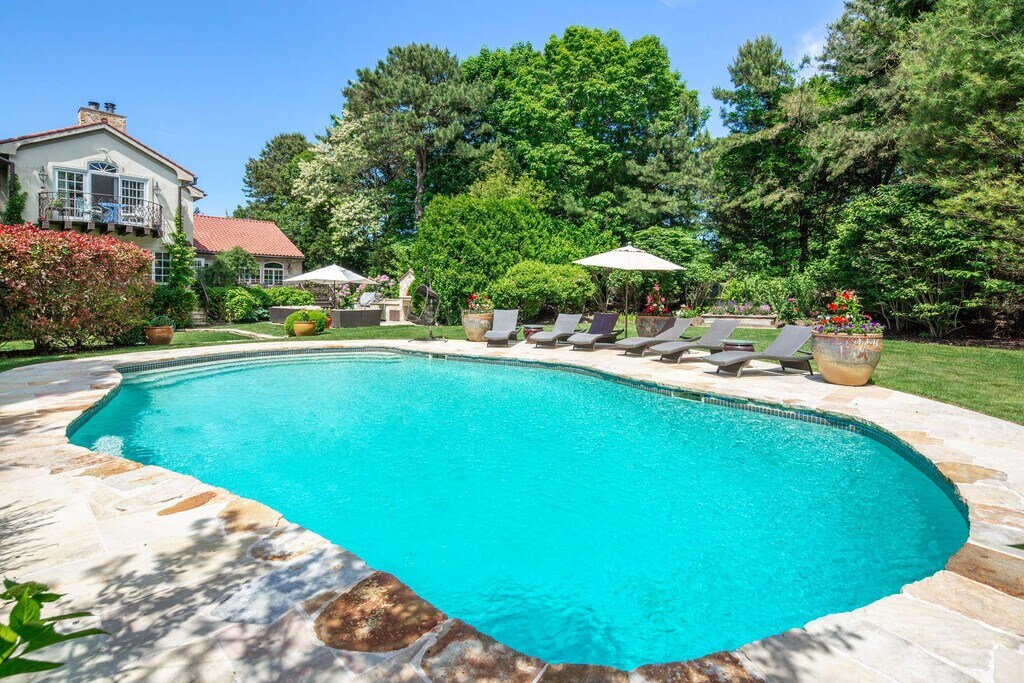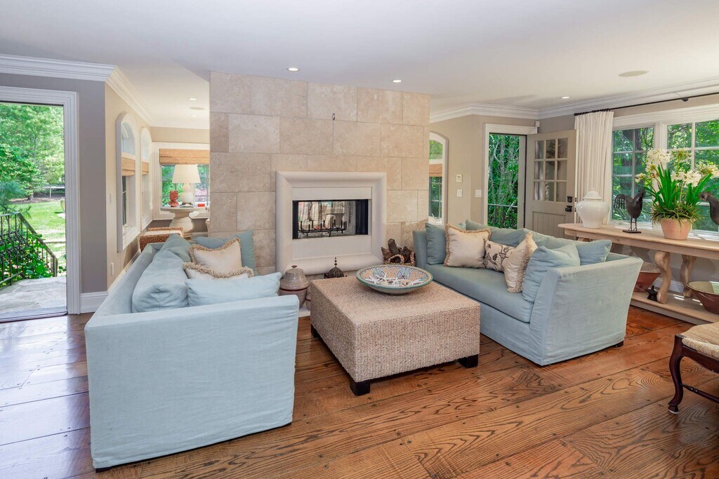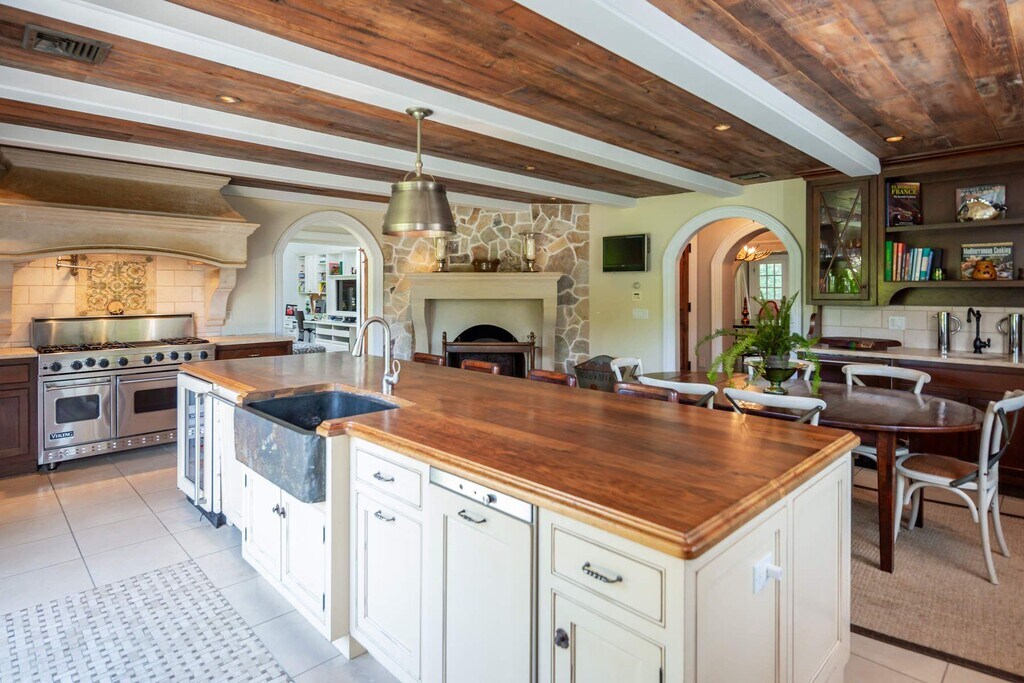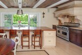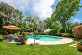 As if plucked from a hilltop in the south of France and placed high on a hilltop in Shinnecock Hills, this villa magically marries the look and feel of Provence, within minutes of Coopers Beach and Southampton village. Frequent celebrity judge on Iron Chef, Karine Bakhoum created this home to raise her family and to celebrate its sun-drenched location. She designed multiple dining areas, both within and outside, including a large country French kitchen and an outdoor kitchen with a pizza oven. It’s a big, sturdy, well built house set in a luxuriously landscaped setting complete with bocce ball court, goldfish pond, pergola, free-form pool, and outdoor living room. There are more surprises inside. Two living rooms share a free standing modern stone fireplace. There’s a formal library, formal dining room as well as two outdoor large dining tables, and a fully finished basement. Flowing over 5,000 square feet and having 5 bedrooms, 18 Club Drive in Shinnecock hills has one more significant benefit. It shortens the drive back to the city by an hour during a busy summer in the Hamptons! Rental Terms: July - Labor Day: $110,000 Memorial Day - Labor Day: $150,000