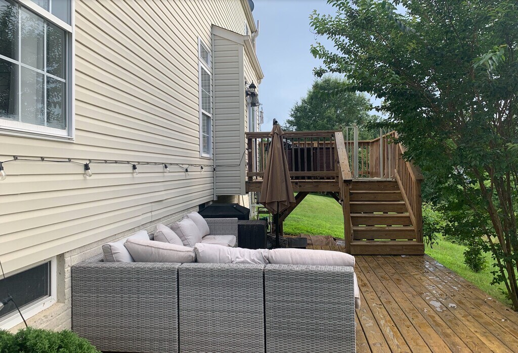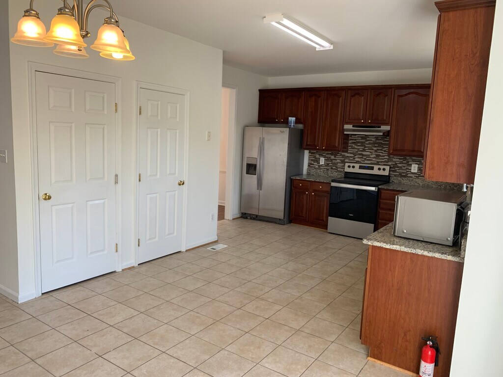This beautiful single-family home has an open floor plan with high ceilings. The property features a master bedroom with high/gable ceilings, ensuite bathroom and a walk-in closet. The top floor includes two additional bedrooms and a full bathroom. The first floor boasts an open-concept layout, featuring a double-height foyer, large kitchen, formal & informal dining areas, and a living room with beautiful double-height ceilings. The formal dining area on the first floor provides versatile space that can be utilized as another living room or a large office. This floor also includes an in-laws bedroom with a full bathroom, offering flexibility. The property comes with a 2-car garage equipped with a Tesla Charger. Enjoy ample space in the large, finished basement, which also includes a laundry area with a washer and dryer, and plenty of storage. Step outside to a beautiful back deck, perfect for enjoying sunsets and outdoor grilling, with no direct neighbors on this area. The spacious basement offers finished area that can be utilized as family/play/gym/man cave area and three unfinished areas for storage. Includes laundry area. **Location Highlights Conveniently located near a variety of shopping options, with Target, Walmart, Lowes, Aldi, and Lidl all within 8 minutes or less on Route 17. Central Park, Costco, and BJ's are just one exit south, approximately a 15-minute drive. The home offers easy access to I-95. Downtown Fredericksburg is a 15-minute drive, offering great local dining options such as Cork and Table, Orofino, and Foode, along with charming coffee shops, ice cream parlors, cupcake shops, and bars. Gayle Middle School is within walking distance, and the community provides multiple playgrounds for children, also within walking distance. Residents can also enjoy a community pool and walking trails. **Availability Property will be available immediately. Smoking inside property is not allowed.