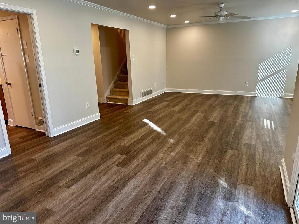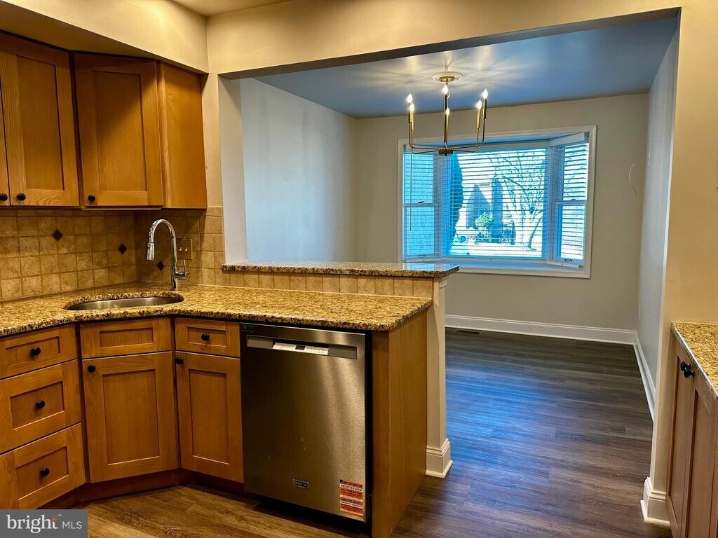 Welcome to this beautifully maintained, newly renovated townhome in the highly desirable Langstoon community of Marple Township, ideally located directly across from Paxon Hollow Country Club and backing to peaceful wooded views. This spacious home offers a bright, open layout perfect for comfortable everyday living and entertaining. Step into the large foyer with a double closet, powder room, and convenient access to the one-car garage. The inviting living and dining areas feature sliding doors that lead to a private hardscape patio and a large backyard surrounded by scenic woods—an ideal setting for relaxing or outdoor gatherings. The newly updated kitchen is a highlight of the home, featuring granite countertops, stainless steel appliances, and a sunny breakfast room with a bay window overlooking the front courtyard. Throughout the home you’ll find updated flooring and well-maintained spaces. Upstairs, the primary suite offers a peaceful retreat with a walk-in closet, spacious bath with a Double bowel vanity, stall shower, and a private balcony—perfect for morning coffee or evening relaxation. Two additional bedrooms, a center hall bath, and convenient second-floor laundry complete this level. A few steps up leads to a unique fourth-bedroom loft with two skylights and its own heating and air conditioning system, making it ideal for a home office, guest suite, or creative space. The newly finished basement provides additional living space, plus a separate storage room. With its excellent location, generous layout, and beautiful setting, this home offers a rare rental opportunity in one of Marple Township’s most sought-after neighborhoods. The home has been completely painted all new flooring , The Kitchen and all Bathrooms have been updated All updates have been made in 2025. Bathroom mirrors to be installed and front door will be painted.