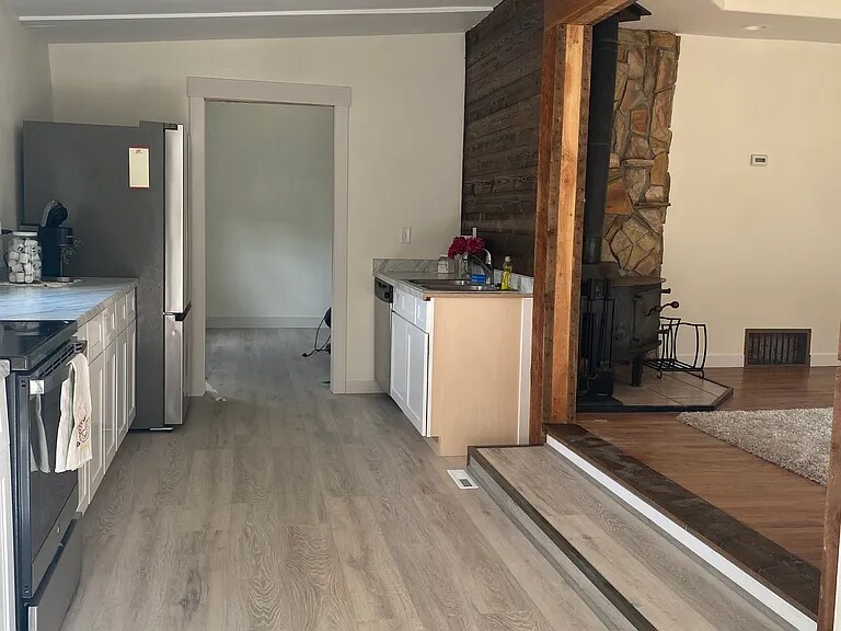 This beautifully updated 3-bedroom, 1-bathroom home sits on a spacious lot surrounded by mature trees, offering a peaceful setting just a short walk from downtown Three Forks. This property blends classic charm with modern updates. Home Highlights: • Inviting living room with double doors, hardwood floors, recessed lighting, and a cozy fireplace • Fully updated kitchen and dining area, perfect for home-cooked meals or entertaining • Two front bedrooms with extra-large closets and plenty of natural light • Primary bedroom features a full-sized bathroom and convenient in-unit laundry area • Third bedroom located just off the kitchen — ideal for a guest room, home office, or play space Step outside and enjoy your own private outdoor retreat — a large, shaded yard that feels like a little slice of paradise. The home is just one block from the community park and walking trails, offering the perfect balance of small-town comfort and outdoor adventure. Additional Details: • Street parking available in front of the home • Tenant responsible for all utilities (water, sewer, electric, garbage) and lawn maintenance • Please note: there is a separately rented ADU behind the home with its own entrance, yard and parking (not included in this rental).