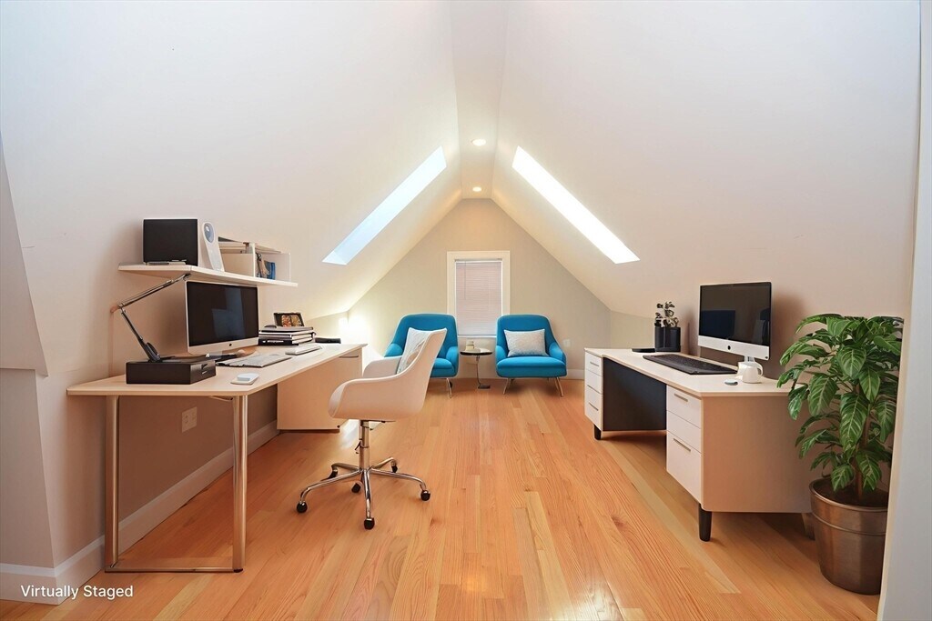 Be the first to live in this spacious,beautifully remodeled 4-bedroom,3-bath unit offering over 1,600 sq ft across two living levels. Located on the second and third floors,the home features hardwood flooring throughout,a fully equipped kitchen with dining area,a bright living room,and two bedrooms with two full baths on the main level. Washer/dryer hookups included. The third floor adds two more bedrooms,one with an office nook,plus a full bath and a bonus office or game room. Two off-street parking spaces and a small garage for a standard vehicle or abundant storage. Available now. Tenant pays utilities. No smoking. Pets considered. Convenient commuter location with easy access to Routes 128 and 93,shopping,dining,and parks nearby. Sun-filled,modern,and move-in ready! Don’t miss this fantastic rental opportunity! MLS# 73479010