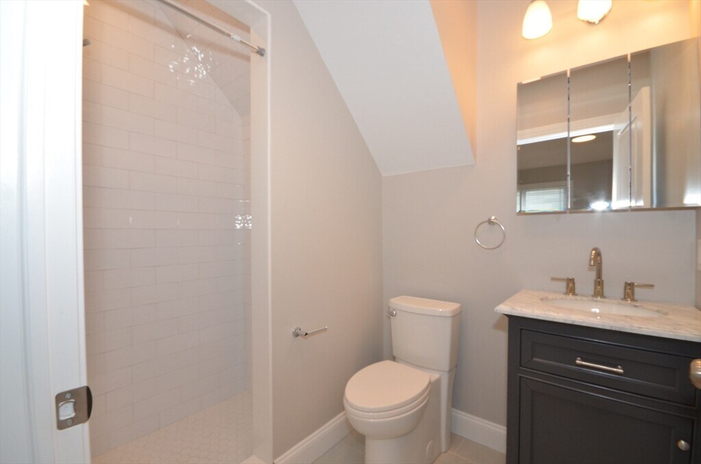 Be the first to live in this spacious,beautifully remodeled 4 bedroom,3 full bath unit offering over 1,900 sq ft across two living levels. Located on the 1st and ground floors,this sun-filled home features an inviting eat-in kitchen with stylish white cabinetry,a bright and comfortable living room,and a main bedroom with en suite bath,plus an additional bedroom and full bath on the main level. Washer/dryer hookups are also conveniently located on this floor. The ground level offers two generously sized bedrooms,a full bath,& a versatile bonus room complete with a mini fridge & sink - perfect for guests,entertaining,or additional living space. Enjoy two off-street parking spaces,a private yard with storage shed,& a large deck ideal for outdoor relaxation. Available now. No smoking,pets considered. Convenient commuter location with easy access to Routes 128 & 93,shopping,dining,and parks! Good credit,references,& verifiable income required. All occupant 18+ must apply. MLS# 73496595