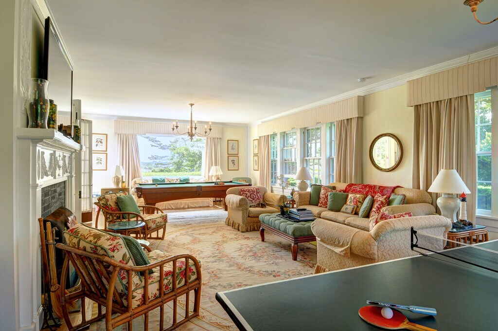 Handsome classic estate house with sensational sunset views over Maidstone Club and Hook Pond. Period beams and paneling, large sun room with wet bar. Game room with ping pong, pool table and big TV. Newly renovated kitchen with dining for 8 and a comfortable sitting area with flat screen TV. Great location in East Hampton. The house can accommodate 12 -15. The property is a stone's throw from the ocean. A special place for 2, 3, or 4 weeks vacation. Rental Terms: August - Labor Day: $175,000
