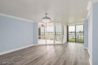 Welcome to 18 Marina Isles,where waterfront living reaches its finest. Nestled in a sought-after gated subdivision surrounded by water,this rare opportunity places you directly on the Intracoastal Waterway with panoramic views and endless sunsets over the Banana River. Enjoy daily scenes of dolphins at play,soaring birds,and the lively energy of boats,jet skis,paddleboards,and kayaks. Perfect for morning coffee or evening wine,the setting also offers front-row seats to rocket launches. This upscale condominium features an elevator,under-building parking,and a beautifully updated first-floor residence. The 2 bedroom,2 bath layout includes an open chef's kitchen with white shaker cabinets,KitchenAid appliances,and a Carrara marble wet bar with French gray cabinetry. The primary suite showcases breathtaking water views and a designer bath with travertine shower. Impact glass windows and wood-look flooring complete this stylish. Milestone & SIRS inspections have been completed MLS # 1070528
