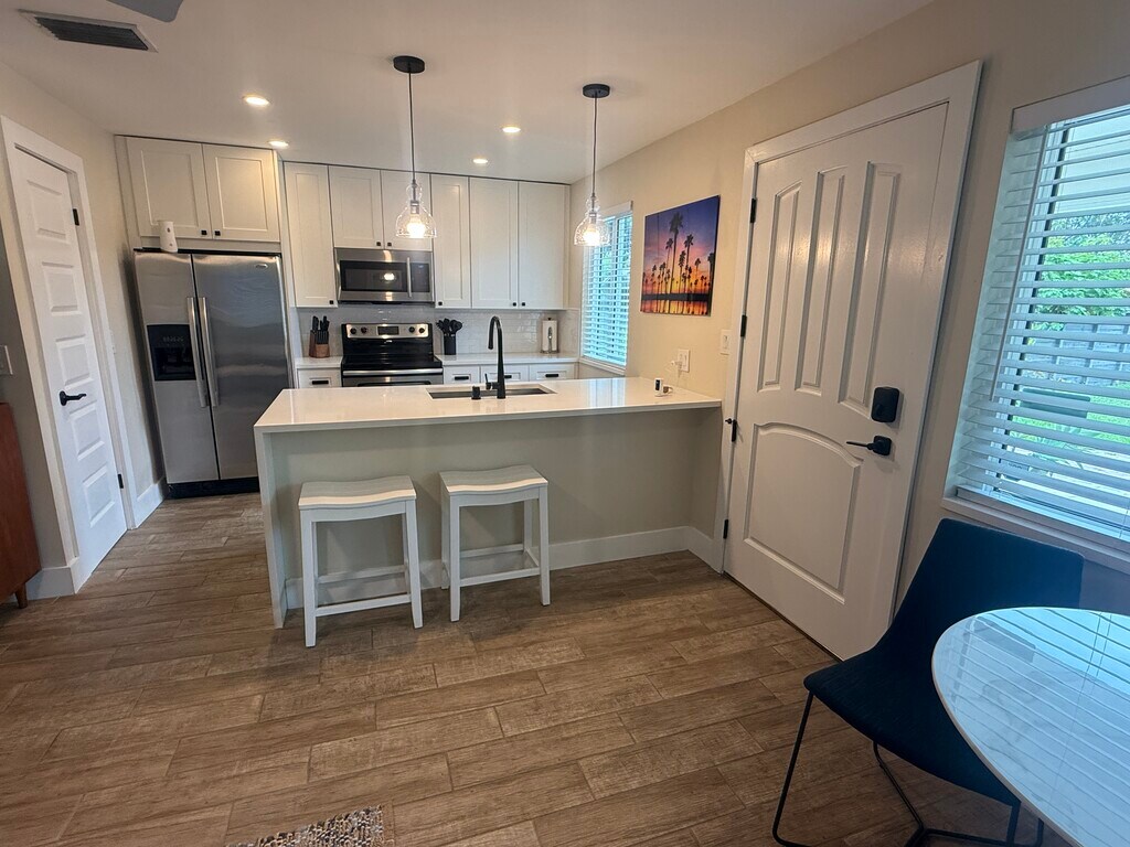 Single family home on a large lot set back 100 feet off the road, in the heart of Delray Beach east of I-95. Home was fully renovated 4 years ago and has everything you need! It has 3 bedrooms, currently laid out with 2 rooms used as bedrooms and the 3rd as an office. Unit comes fully furnished. Open living room and kitchen. Step out onto the front patio for morning coffee, or onto the side patio for gathering under the sunshade and string lights. Pavers cover the driveway, porch and all around the house. No neighbors on either side as it's on the end of the street and the adjacent lot is vacant with mature trees. Just a few blocks to Delray Beach's famous Atlantic Ave with fantastic dining, shopping and entertainment. Close access to I-95. Only 1.5 miles to the beach, voted #1 in Florida by USA Today for the last 2 years in a row. It is a great town with lots to do. Close to several airports and hospitals. 600mps Xfinity internet for the WFH folks. Flexible terms depending on your needs and season. Off Season (June-Oct)- $3500/month Peak Season (Nov-May) - $6000/month Annual Lease - $4000/month Utilities (electric, water) included capped at $400 per month (you cover anything over) Wifi, trash, landscaping service, routine pest control service included. Virtual tour can be seen here: Contact owner at