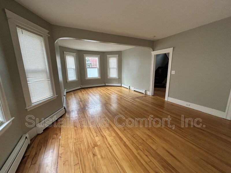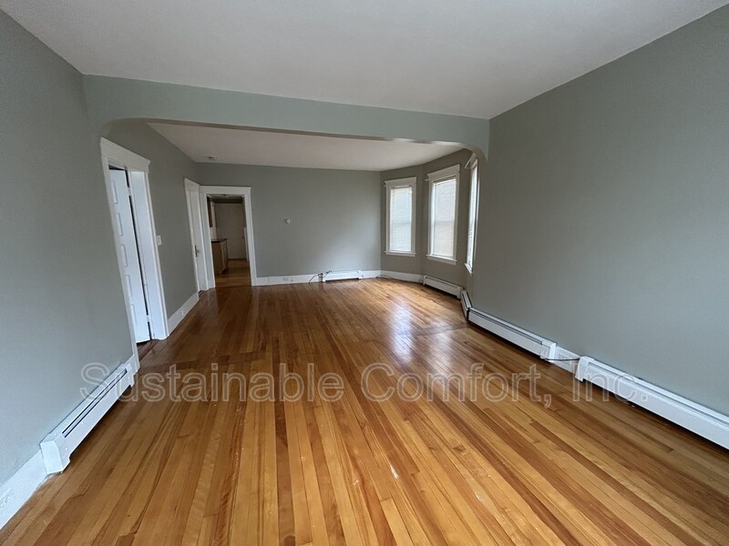 Spacious, first floor 2 bedroom unit and office / smaller bedroom. Has a newly renovated kitchen, plenty of cabinet and counter space. (1) off street parking spot, gas heat and hardwood floors. Pet friendly with fenced back yard. Common use laundry room in basement.