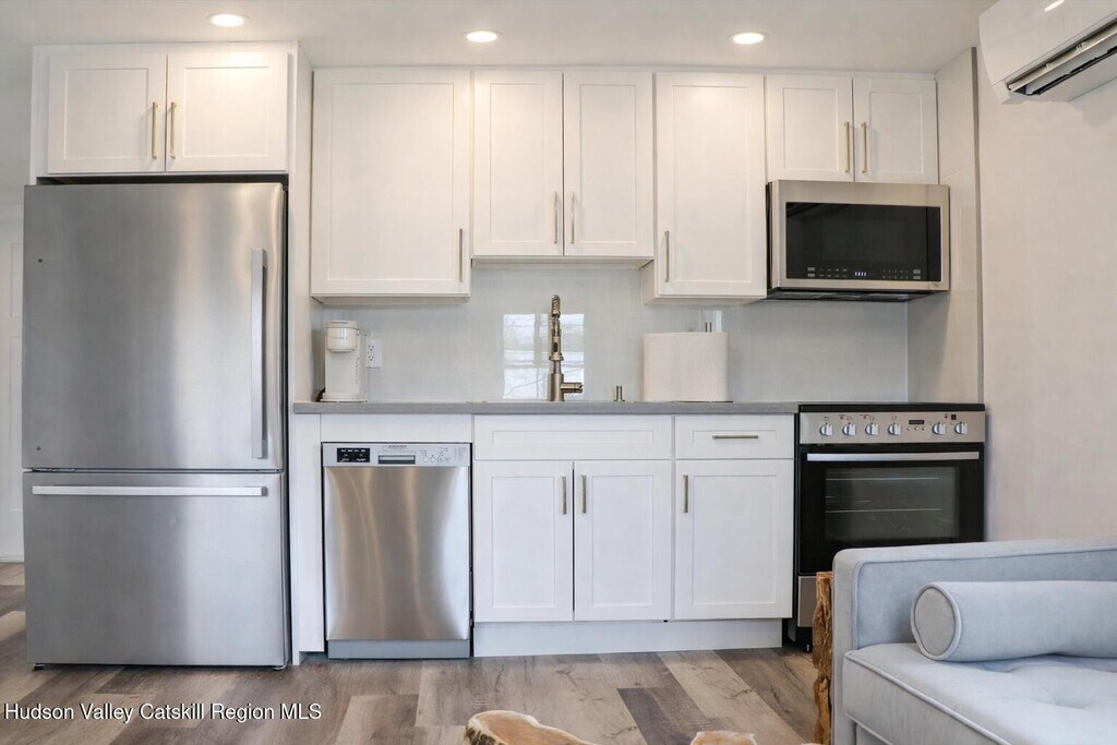 Beautifully renovated 1-bedroom,1-bath home in the heart of Woodstock,just 90 miles from NYC. Ideally located in downtown Woodstock,walking distance to restaurants,bars,shops,markets,bakeries,pharmacies,galleries,cinema,and theater. Originally an 1890s farmhouse,this unit has been thoughtfully reimagined with a bright,open-concept layout featuring expansive windows,a spacious living room with dining space,and a modern kitchen with premium appliances. The bedroom is generously sized,and the bathroom features clean,modern finishes. Additional amenities include split-unit climate control for year-round comfort,parking available,and a front shared yard area with grill and seating--perfect for outdoor relaxation. This charming spot is in close proximity to town and offers direct access to the Trailways bus stop for easy,convenient trips to and from NYC--no car needed! Landlord pays water,internet,landscaping,snow removal,and trash. Tenant pays electric. Ideal for enjoying Woodstock's cultural offerings. Short-term rental options available upon requests!