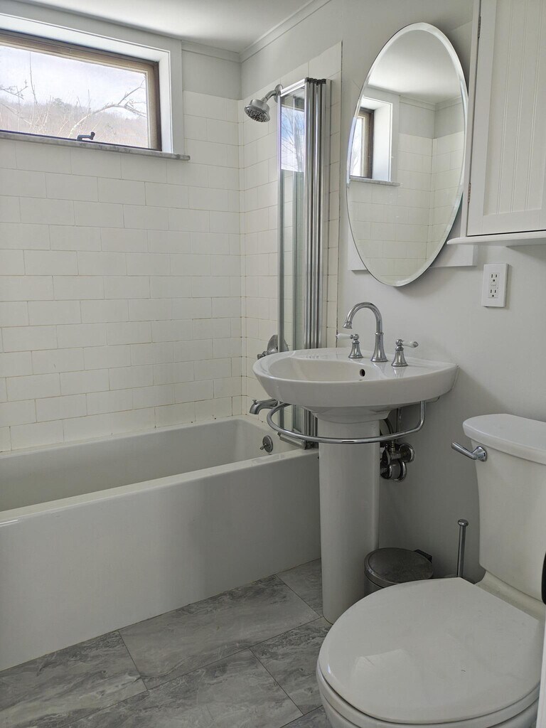This spacious, newly updated home is one block from the center of Phoenicia, an easy walk to town and the historic Phoenicia Playhouse. 2 bedrooms, 1.5 baths, this home is located on a quiet street with little activity. The house has good light. There are through-the-wall air conditioning units in the living room and both bedrooms. The living room is large and has a gas stove that provides both heat and coziness. Heat is electric, with thermostats in each room so tenant can decide which rooms to heat and when. The kitchen is newly renovated and has plenty of storage. There is a separate dining area. The laundry room has enough space for a dedicated work space or craft space, and it leads right out to the generous screen porch that provides total privacy. The backyard is a nice size, and in warm weather offers a lot of privacy because of the plantings and the location--it's like having your own oasis, The bedrooms are both on the second floor and share an attractive full bathroom with a tub/shower combination--the tub is large and deep. There is a full basement with a concrete floor, offering plenty of storage space and ample room for a workshop. Tenant pays all utilities. Landlord pays for lawn maintenance and snow removal. Refundable pet deposit $500. Credit rating of 700 or above. Income level of 2.5x rent. Please call or text Robyn Pollins, the property manager, for any questions and to set appointments for showings. Showings are available almost every day, and we are very flexible with times.