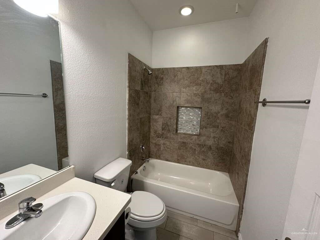 Good size 2-bedroom,1.5-bath apartment featuring a contemporary design and functional layout. Interior highlights include all tile flooring throughout,open-concept living and kitchen area,and washer/dryer connections. The kitchen offers white quartz countertops,deep ebony cabinetry,and comes equipped with stove,oven,and refrigerator. The layout opens to the living room,creating a comfortable and practical living space. Exterior features include covered parking and a private cedar wood fenced backyard. Small pets are welcome Conveniently located in Edinburg with easy access to shopping,dining,and major roads.