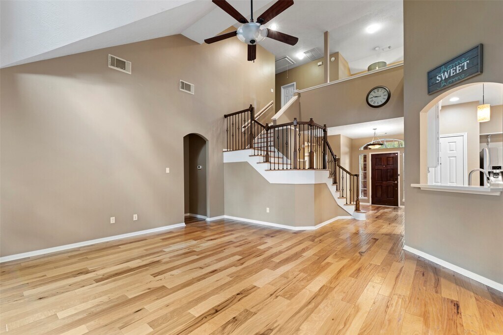 Welcome to the mecca of shopping,dining,and award-winning schools! This home is sits within walking distance to the pool,park,courts,& miles of scenic trails. The curb appeal shines through w/ a welcoming covered front porch. You’ll love the open layout w/ soaring ceilings & hardwood throughout! The family room is a showstopper,w/ a cozy fireplace w/ views of the lush,tree-filled backyard. The primary suite is a retreat,complete w/ dual vanities,& a spacious walk-in wardrobe! Upstairs,a fantastic game room awaits,featuring a custom built-in bench & shelving unit,plus a stylish brick accent wall! Outside a covered patio and sitting area. Even your four-legged friend gets a treat with a built-in dog door leading to the yard. All residents are enrolled in the Resident Benefits Package for $35 a month. Terms and conditions may apply. All information including advertised rent and other charges are deemed reliable but not guaranteed and are subject to change. MLS# 23581965