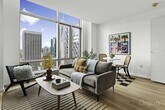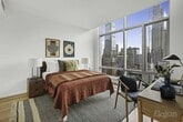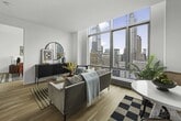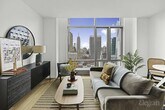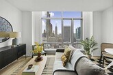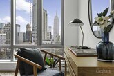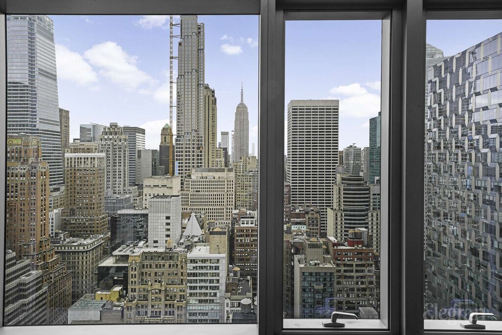 LL SHOWINGS INCLUDING OPEN HOUSES ARE BY APPOINTMENT ONLY. Perched on the 35th floor, this stunning one-bedroom penthouse offers breathtaking views of the Manhattan skyline and the Empire State Building through soaring 11-foot floor-to-ceiling windows. Bathed in natural light throughout the day, this dream residence combines modern luxury with elegant design. The beautifully designed European custom kitchen flows seamlessly into the living space, creating a perfect setting for both relaxation and entertaining. The spacious marble bathroom boasts a double vanity, Waterworks fixtures, a separate glass-enclosed shower, and a deep soaking tub for a spa-like retreat. Additional conveniences include an in-unit Bosch Axxis stacking washer and dryer. Located in The Centria, a premier full-service condominium, residents enjoy unparalleled amenities, including a 24-hour doorman and concierge, a live-in resident manager, a state-of-the-art fitness center, and an elegantly designed lounge with