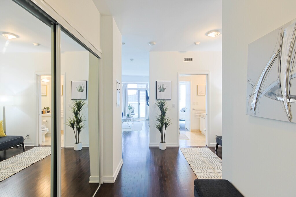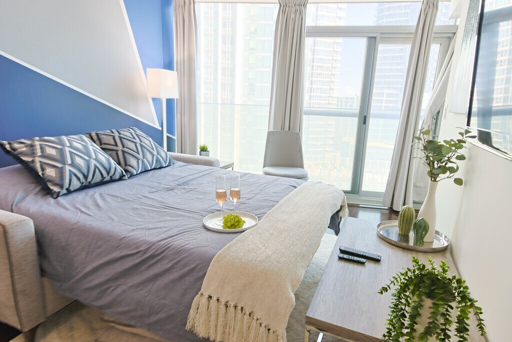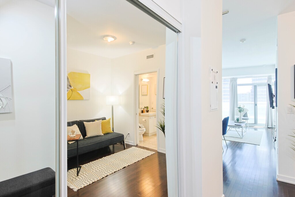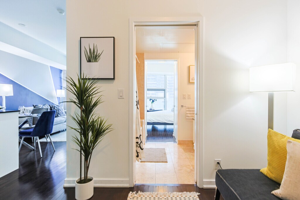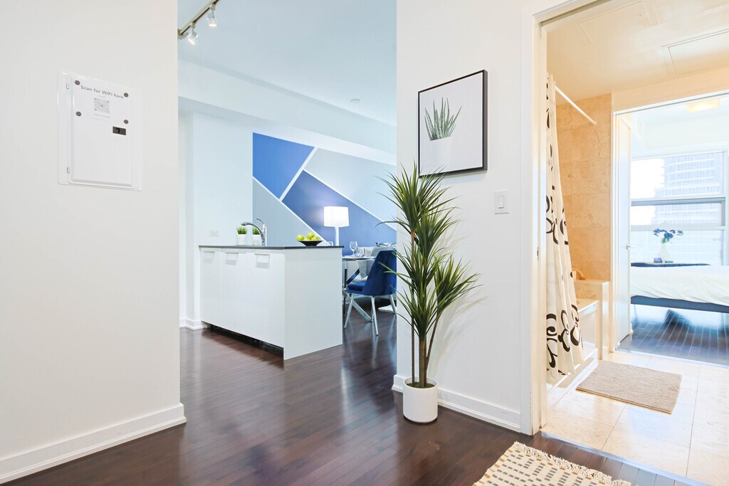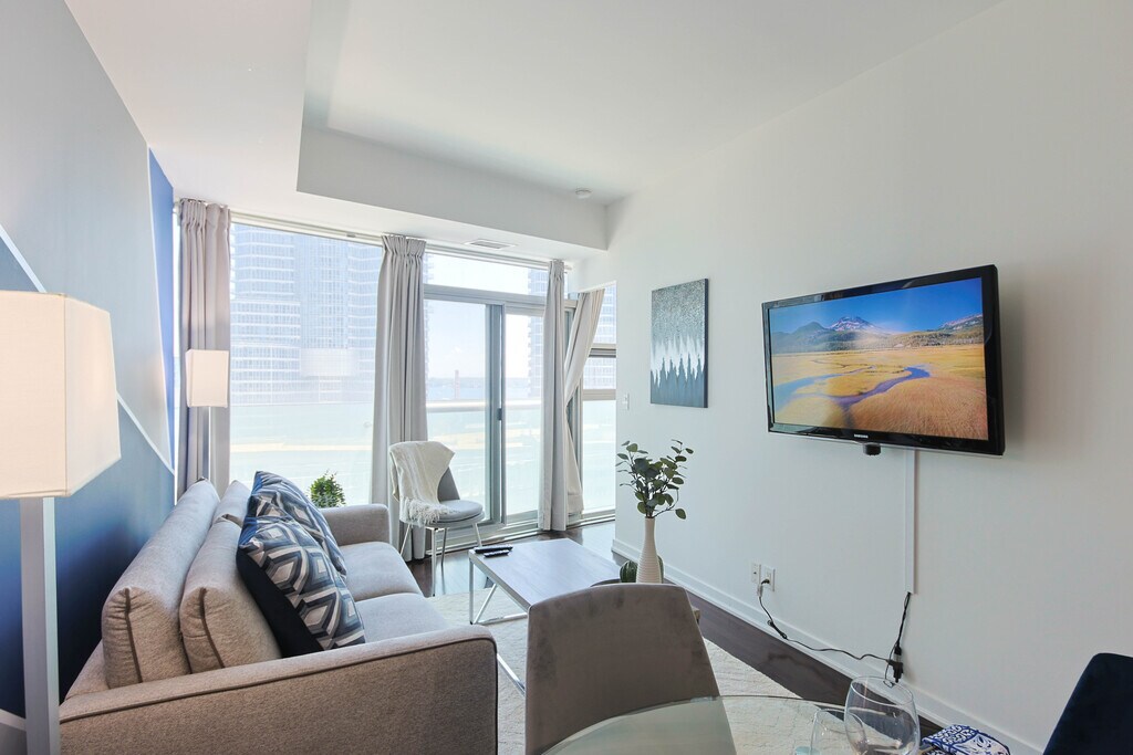 Welcome to this beautiful condo located in the heart of Toronto's Entertainment District! This cozy unit is located within walking distance from some of Toronto's most popular attractions, restaurants and nightlife, including the CN Tower, Rogers Center, Scotiabank Arena, and Ripley's Aquarium. FULLY FURNISHED// You’ll have access to all of our pots, pans, cutlery, glasses, mugs, cutting boards, etc., for your tasty creations. The kitchen also holds plenty of storage for any of your own ingredients. The living room area is equipped with a comfortable sofa bed, a 55' TV, and 700+Mps high-speed internet. You will also have access to a beautiful view of Lake Ontario and the city skyline! Towels and Bedding Provided! Situated in the heart of Toronto, this condo enjoys unparalleled convenience with direct access to the P.A.T.H. underground network, ensuring easy connectivity throughout the city. Don't miss the chance to call this condo your home and immerse yourself in the vibrant lifestyle of downtown Toronto.
