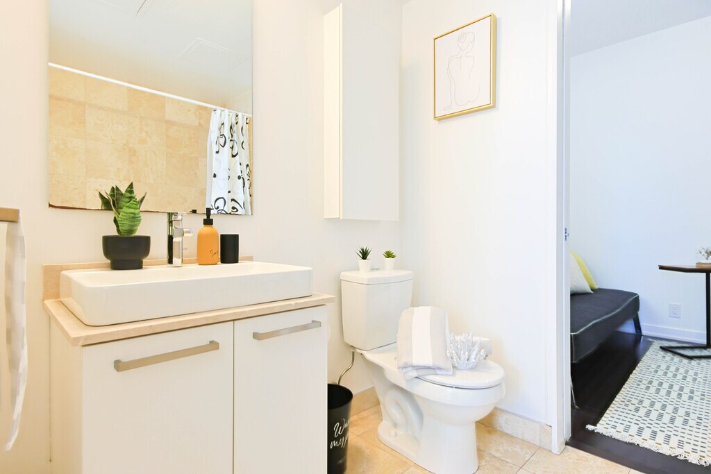 Feel right at home in this beautiful 2-bedroom, 2-bathroom condo located on the 20th floor, complete with a balcony. This comfortable suite has everything you need. The fully functional kitchen is equipped with tea, coffee, a kettle, coffeemaker, and toaster. A washer and dryer are available with supplies. The 2 bathrooms include towels, shampoo, conditioner, body wash, a hair dryer, and other toiletries. Paid underground parking with in/out privileges is available upon request for $20 per night ($10 per night for 20+ day reservations). A travel crib (for babies 0-18 months) and bed rails are available for $5 per item per night. Pets are allowed for a fee of $10 per pet per night; please confirm availability prior to booking. This centrally located apartment is steps from the Air Canada Centre and Union Station, and within walking distance of the Skydome, CN Tower, Aquarium, Financial District, and hundreds of restaurants. The Eaton Centre and Queen Street fashion district are also nearby. Enjoy easy access to the subway, GO station, grocery store, LCBO, and TD bank. Guests must be 18 or over in order to check in. According to the condo rules, information about guests must be provided to the condo management prior to arrival, including names, ID details, and vehicle and license plate numbers (if parking is required). Guests whose names or IDs do not match the information given are not allowed into the building. As an anti-fraud measure, a selfie with your ID in your hands is required. [SI]