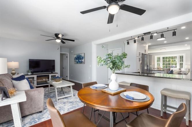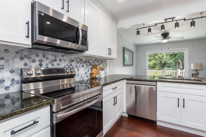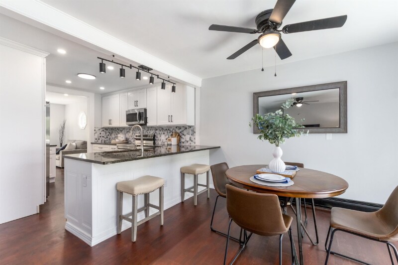 Property Id: 2392737 Updated electrical, plumbing, an updated bathroom, refinished hardwood flooring and fresh paint throughout are just a few of the many exciting updates you’ll find in this home. Just inside, the fantastic open layout begins with a sunny front living room with large bay windows and direct access to the kitchen and other living spaces. In the kitchen, you’ll find brand new stainless steel appliances, granite countertops, soft close cabinets, tile backsplash and a peninsula with space for counter seating. On the other side of the kitchen is a fantastic dining room space with a slider to your back deck, great for summertime grilling and entertaining. In addition to the updated full bathroom, the owner has recently added an additional ¾ bathroom and walk-in closet off of one of the bedrooms creating a wonderful private suite.