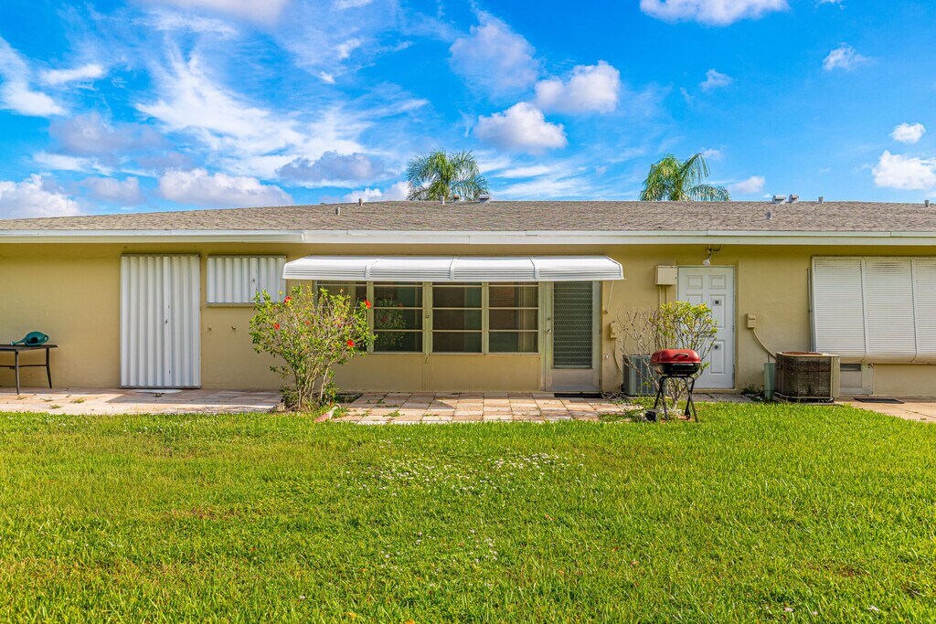Peaceful 1 Bedroom 1.5 Bath Villa in the 55+ community of High Point of Delray in Delray Beach. No neighbors above you or behind you. Features include Screen/Windowed Lanai/Patio, Adjustable Awnings, Private Backyard area, Parking spot that is a short distance to the entrance, and Community Laundry. Bedroom has a partition separating the sleeping area from the bathroom (can be removed). Amenities include: Clubhouse .1 mile away, Pool, Library, Shuffleboard, & Kitchen. Short drive to the Beach, Delray Medical Center, Restaurants, trendy Atlantic Ave, The Boys Farmers Market, Costco & I-95.