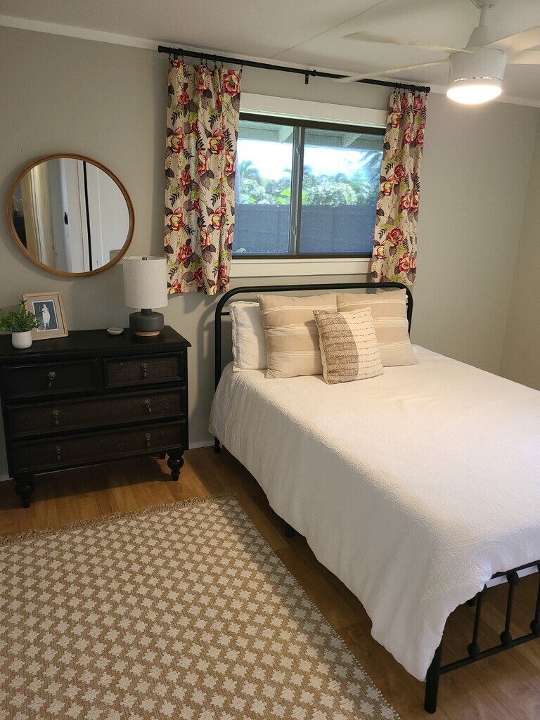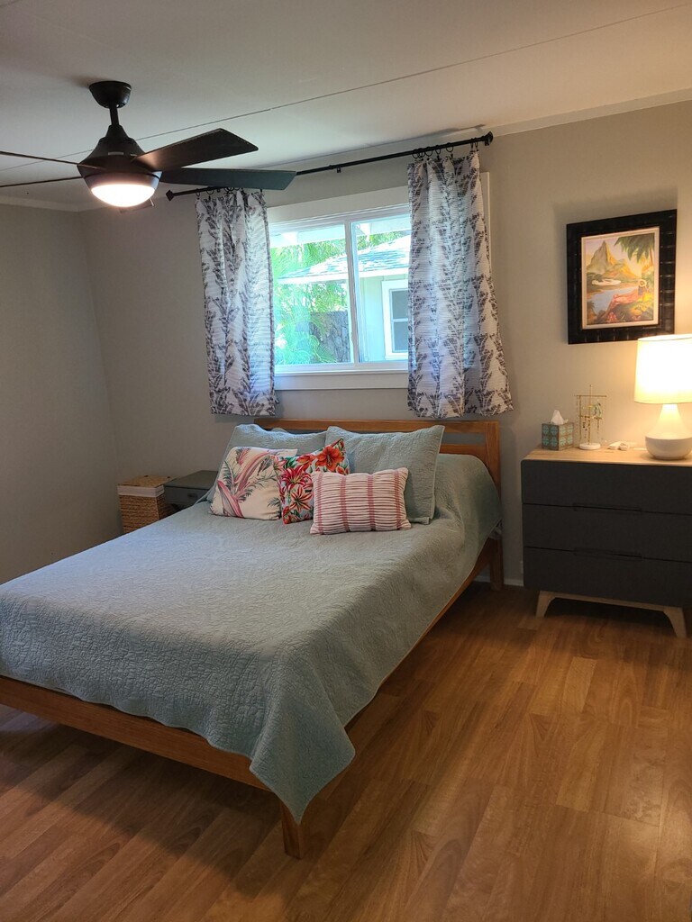 Wonderful home in Kailua Rare 15,000 sqft lot Powerful new Split A/C Updated 4 Beds 3 baths, comfortable living areas. Spacious northwest facing covered lanai for entertaining. Detached office / art studio (does not have plumbing). Easy access to MCBH. Friendly best of Kailua neighborhood. 1 year lease available +utilities. Yard care included. Furnished, or partially furnished option. Entire lower house. Second story is not rented during term, please inquire for more info. Application requests and submissions kindly requested only after in-person showing. This property is managed by a responsible landlord using Avail landlord software. Mahalo!