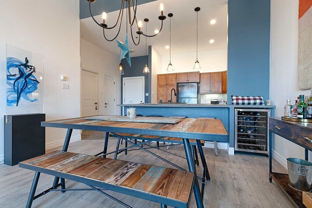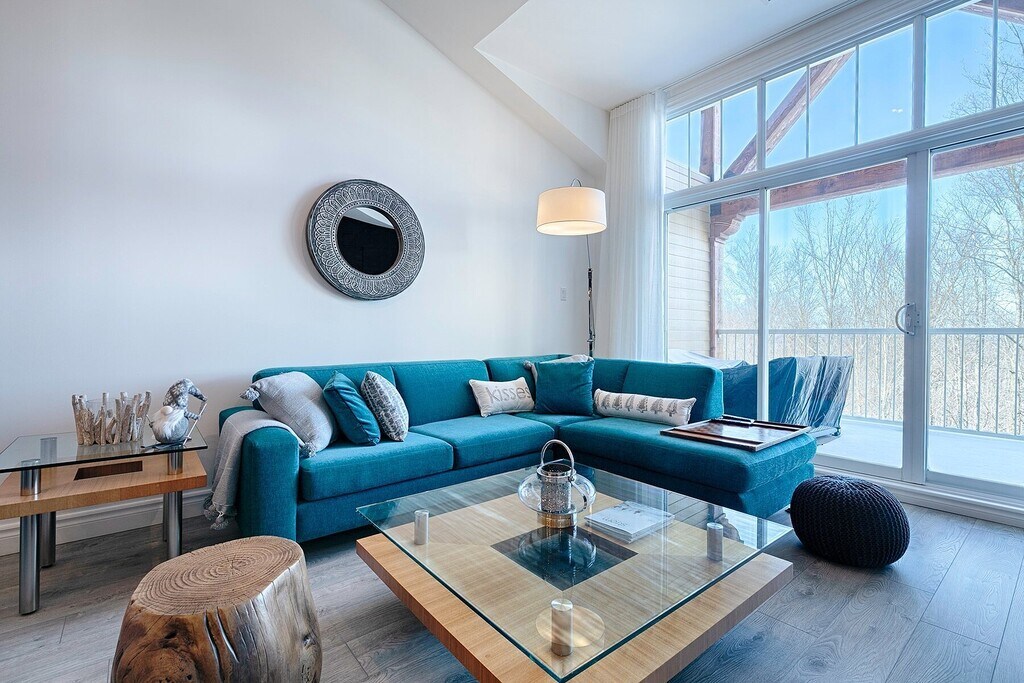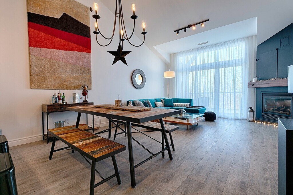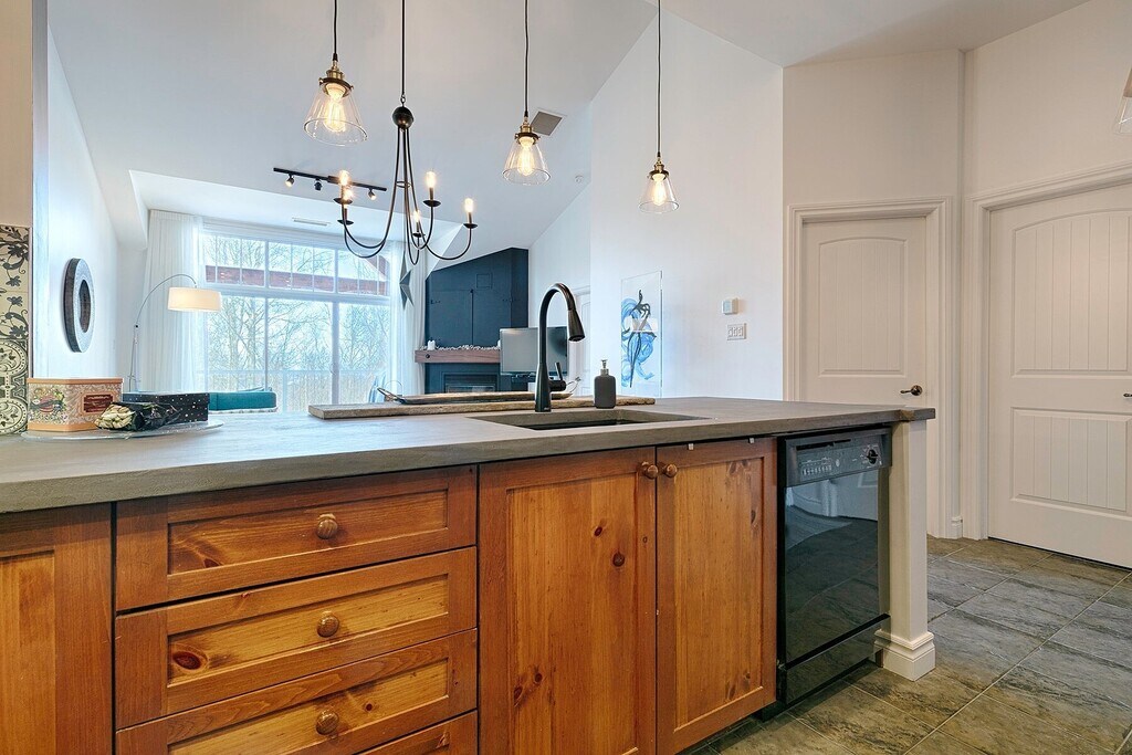 Magnificent spacious property located in the prestigious domain of Le Cercle-des-Cantons! Large open living space, high quality material, abundant windows, lots of light, fully equipped kitchen, cathedral ceiling, 2 bedrooms, 2 bathrooms, bedding included, gas fireplace, parking space in the garage with electric car charger and adjacent locker, terrace with open views of the wooded area, access to the private outdoor salt-heated pool. Electricity, gas, Wifi and cable TV included. A well-kept secret in Bromont! Rental from May 1, 2026 for 6 or 18 months. Occupancy possible from April 1st at prorated days.