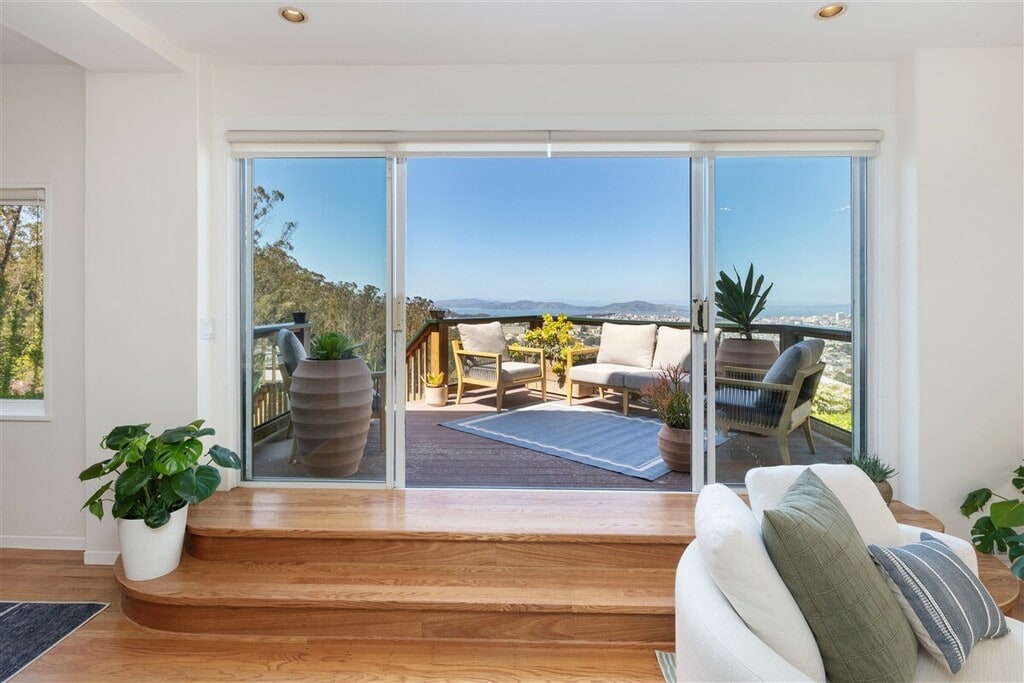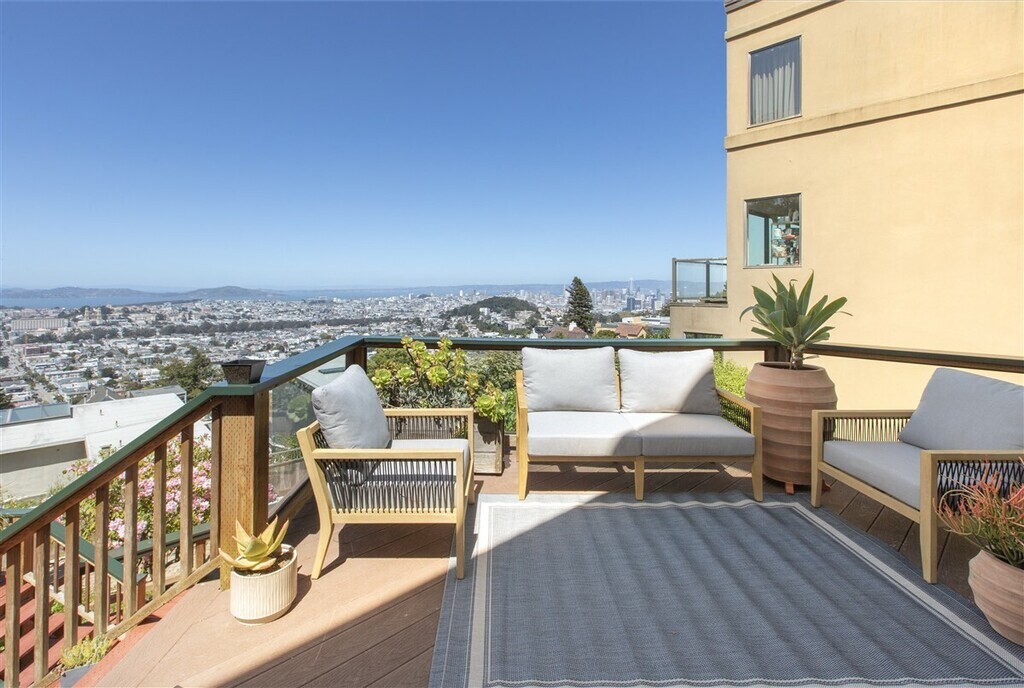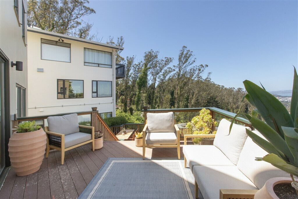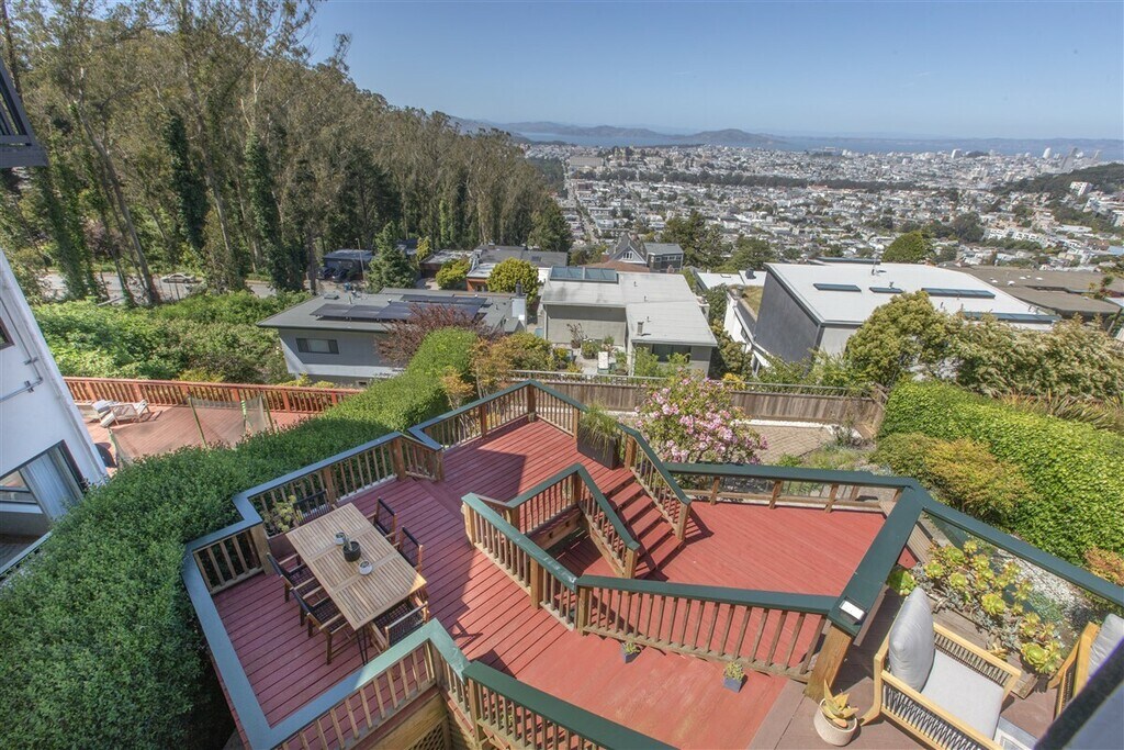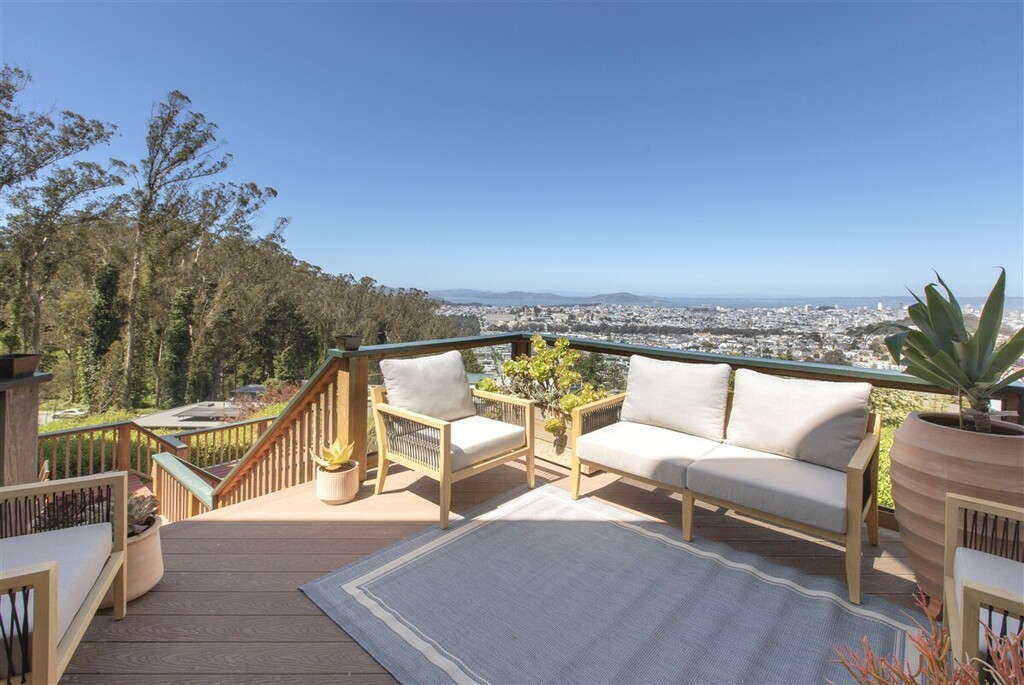 Extraordinary 3-level house. 4 Bedrooms and 3 bathrooms. Upper Cole Valley. Amazing views. Pets are negotiable.The house is on a double lot on a cul-de-sac in upper Cole Valley.Offered completely furnished.Main level:- Front courtyard- Spacious open-plan living room with a dining alcove- Gas fireplace- Amazing panoramic views of the City and Bay- Access to a large, multi-level deck complex and ground-level shared garden, also with amazing views.- Large kitchen with stainless steel appliances and counter-tops - Dual built-in ovens - Large refrigerator - Dishwasher - Five-burner gas range - In-sink disposal- Hardwood flooring throughoutTop level:- Newer carpeting on stairway- Hardwood flooring in bedrooms- Master bedroom - Panoramic views of the City and Bay - En suite stone bathroom with a shower-over-tub, and great views - En suite sunny office room with newer carpeting and access to a small deck - Two walk-in closets- Second bedroom - Panoramic views of the City and Bay - En suite bathroom with the same great views - Good closet space- Third bedroom - South-facing and sunny - Has its own entrance, but can be joined to or separated from the second bedroom via pocket doors - Good closet space- Extra closet in common areaLowest level:- Large and bright family room with access to the decks and backyard- Completely renovated full kitchen- Bedroom with carpeting- Recently remodeled full bathroom with a pedestal sink and a claw foot tub and shower- Extra storage spaceLocation:- High up on a hill, quiet and secluded- Easy access to shops and restaurants in Cole Valley, Inner Sunset, Noe Valley, and more.- Easy access to the 280 freewayOther Notes:- Easy street parking- Laundry appliances are included- Pets are negotiable- The minimum lease term is 12 monthsAgent information:Mazal BordoRelocation Agent | REALTOR CA DRE #: 01243370