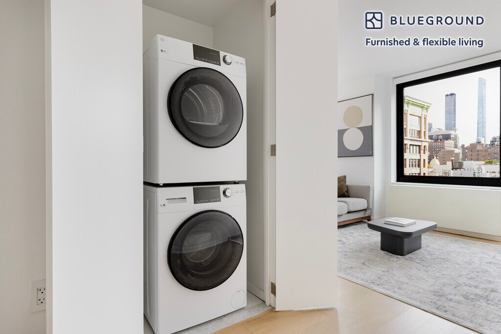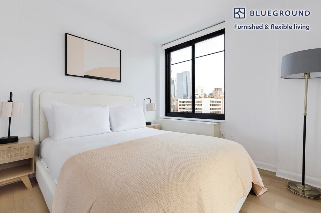 Discover the best of New York, with this two bedroom apartment in Chelsea. It’ll be easy to simply show up and start living in this fashionably furnished apartment with its fully equipped kitchen, lovely living room, and our dedicated, on-the-ground support. (ID #NYC2139) The advertised rate of $8,150/month is the lowest available price, based on a 1 month(s) and 3 day(s) stay with a move-in date of December 15, 2025. If you’re looking for a 1-year stay, the rate is $11,920/month. Rates vary depending on the duration of stay, season, and other parameters. For exact pricing and additional pricing components, please visit our website and enter your desired move-in and move-out dates. The rate is applicable when billed upfront; it can be higher if billed in multiple payments. Brokers are welcome to reach out. Were you looking for an unfurnished lease? Try Blueground instead and upgrade from unfurnished to furnished living: - Furnished at rates comparable to unfurnished - No setup or furniture costs - save thousands - Move-in ready - save time, just bring your suitcase Designed with you in mind Gorgeous furniture, fully equipped kitchen, smart TV, and a premium wireless speaker are just a few of the amenities you’ll find inside this two bedroom apartment. Ideally located in New York, you’ll find a lot to love outside as well. When you’re ready to relax, you’ll be happy to discover every Blueground bedroom comes with superior quality mattresses, luxury linens, and cozy towels. We handle everything so you can simply show up and start living. This apartment also offers in-apartment laundry. Sleeping arrangements Queen Bed, 63in/160cm Queen Bed, 63in/160cm Amenities Building amenities unique to this two bedroom apartment include an on-site: - BBQ Area - Doorman - Dryer - Elevator - Washing machine - Lounge - Pets allowed Arrival and ongoing support The entire apartment is yours to enjoy! Throughout your stay, you’ll have access to our Client Experience team through the Blueground App. You can schedule additional cleanings, submit maintenance requests, and view our neighborhood recommendations with just a few taps. We’ll share all details upon confirmation of your stay. Ideally Located This furnished apartment is located in Chelsea, one of the city’s trendiest neighborhoods. Considered an artistic and creative center, there are over 200 galleries to discover. Ranging from classical to experimental art, there is something for every taste. Take a stroll through the High Line park for a unique perspective and a breath of fresh air. What used to be a railroad, now provides stunning views of Manhattan’s architecture. This area is also known for its various fine dining options and hip nightlife. From Chelsea, JFK Airport is just 30 minutes away by car. Other things to note Building amenities may have an extra cost. This Blueground apartment has flexible lease options, allowing you to book it for one month, a year, or more. Pets are welcome, though weight limits and breed restrictions apply and may incur fees. Brokes CYOF. We take great pride in ensuring every photo displayed is shot in our own units with our actual furnishings. That said, we regularly refresh our decor and furniture arrangement, which may differ from what’s pictured. [SI]