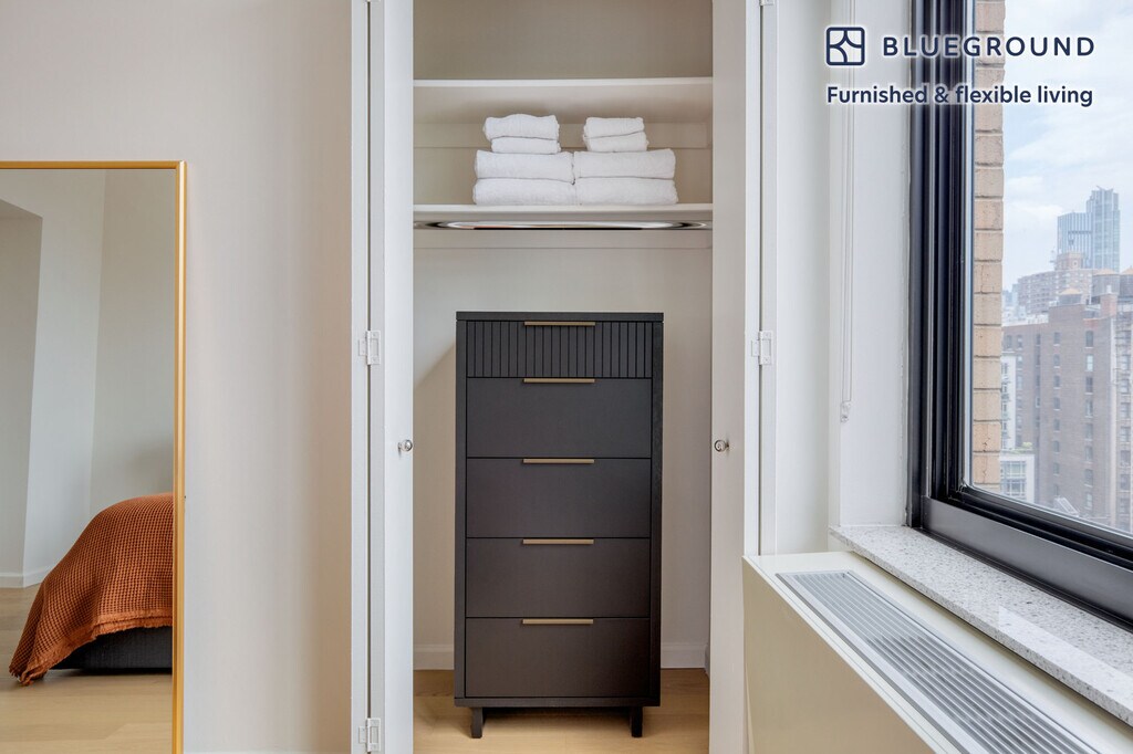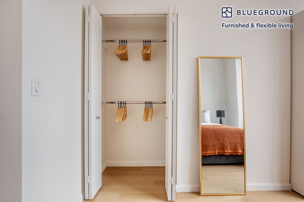 Discover the best of New York, with this two bedroom apartment in Chelsea with high floor views over the city. It’ll be easy to simply show up and start living in this furnished apartment with its fully equipped kitchen, living room, and our dedicated, on-the-ground support. (ID #NYC1202) The advertised rate of $7,930/month is the lowest available price, based on a 1 month(s) and 17 day(s) stay with a move-in date of December 1, 2025. If you’re looking for a 1-year stay, the rate is $11,770/month. Rates vary depending on the duration of stay, season, and other parameters. For exact pricing and additional pricing components, please visit our website and enter your desired move-in and move-out dates. The rate is applicable when billed upfront; it can be higher if billed in multiple payments. Brokers are welcome to reach out. Were you looking for an unfurnished lease? Try Blueground instead and upgrade from unfurnished to furnished living: - Furnished at rates comparable to unfurnished - No setup or furniture costs - save thousands - Move-in ready - save time, just bring your suitcase Designed with you in mind As with any Blueground apartment, you’ll find a thoughtfully designed space complete with beautiful furniture and a fully equipped kitchen in this two bedroom property. And, thanks to our superior quality mattresses, luxury linens, and towels, you can relax knowing you’ll always feel comfortably at home. When you’re ready for some fun, you can take in the New York vibes or bring the entertainment to you with the premium wireless speaker or smart TV. This apartment also offers in-apartment laundry. Sleeping arrangements King Bed, 70.8in/180cm Queen Bed, 63in/160cm Amenities Building amenities unique to this two bedroom apartment include an on-site: - BBQ Area - Doorman - Dryer - Elevator - Washing machine - Lounge - Pets allowed Arrival and ongoing support The entire apartment is yours to enjoy! Throughout your stay, you’ll have access to our Client Experience team through the Blueground App. You can schedule additional cleanings, submit maintenance requests, and view our neighborhood recommendations with just a few taps. We’ll share all details upon confirmation of your stay. Ideally Located This furnished apartment is located in Chelsea, one of the city’s trendiest neighborhoods. Considered an artistic and creative center, there are over 200 galleries to discover. Ranging from classical to experimental art, there is something for every taste. Take a stroll through the High Line park for a unique perspective and a breath of fresh air. What used to be a railroad, now provides stunning views of Manhattan’s architecture. This area is also known for its various fine dining options and hip nightlife. From Chelsea, JFK Airport is just 30 minutes away by car. Other things to note Building amenities may have an extra cost. This Blueground apartment has flexible lease options, allowing you to book it for one month, a year, or more. Pets are welcome, though weight limits and breed restrictions apply and may incur fees. Brokes CYOF. We take great pride in ensuring every photo displayed is shot in our own units with our actual furnishings. That said, we regularly refresh our decor and furniture arrangement, which may differ from what’s pictured.