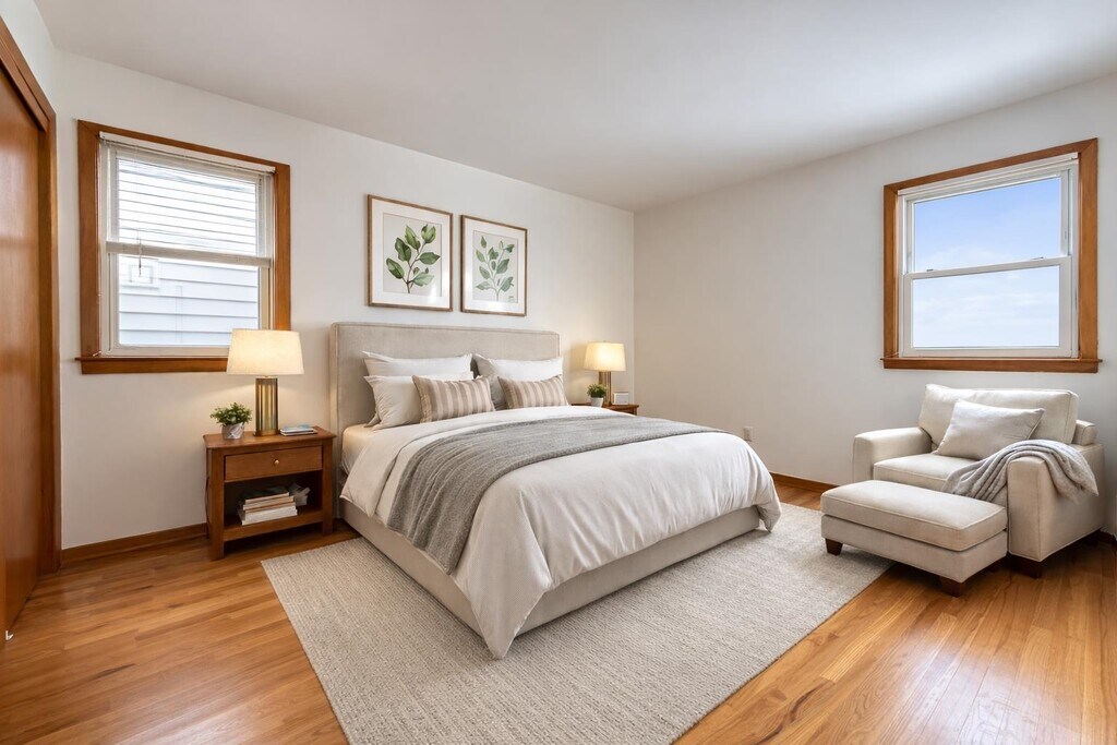 Freshly Painted - Sunny and spacious 3-bedroom apartment in a well-maintained owner occupied two family home. This unit features beautiful hardwood floors throughout, a large eat in kitchen, tons of closet space, newer windows and separate utilities provide as added convenience. Located on a quiet residential street with ample street parking, offering a comfortable and well-kept living environment while still being close to parks, local shops, schools, transportation, and neighborhood amenities.