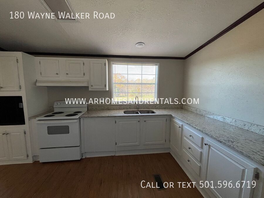 180 Wayne Walker Road Romance, AR 72136 1/2 Off First Month Rent Special!!!! Don't miss out on the opportunity to make 180 Wayne Walker Road your new home. Contact us at: today for more information on leasing options or apply now at our direct website: Features: - Single-family home - Master bath - Granite countertops - Electric stove - Electric water heater - Central heat and air system - Washer and dryer connection - Ceiling fans - Yard - Porch - Patio Ceiling Fan Central Heat And Air (Electric) Electric Stove Electric Water Heater Granite Countertops Large Back Yard Single Family Home Washer And Dryer Connection