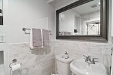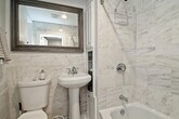 Feel at home in this modern, fully furnished 1-bedroom, 1-bathroom English basement condo in a historic row house, just steps from Dupont Circle. This condo features built-in storage, stainless steel appliances including a gas stove and dishwasher in the kitchen, a washer and dryer in the unit, and in-wall air conditioning. The bathroom includes a tub and shower with marble tile. A pull-out sofa is available for guests. Situated in one of DC’s most desirable neighborhoods, it's just steps away from the best restaurants, grocery stores, transportation, cafés, and shopping. There is easy access to car sharing, Capital Bike Share, and a short walk to Washington Sports Club, VIDA Fitness, and Hilton swimming pool (memberships required). The Dupont Circle (red line) Metro Station is just three blocks away. With a walk score of 97, transit score of 86, and bike score of 89, this location is ideal. The condo is located in Dupont Circle, a traffic circle, neighborhood, and historic district in Northwest Washington, D.C. The traffic circle is located at the intersection of Massachusetts Avenue NW, Connecticut Avenue NW, New Hampshire Avenue NW, P Street NW, and 19th Street NW. The Dupont Circle neighborhood is bounded approximately by 15th Street NW to the east, 22nd Street NW to the west, M Street NW to the south, and Florida Avenue NW to the north. [SI]