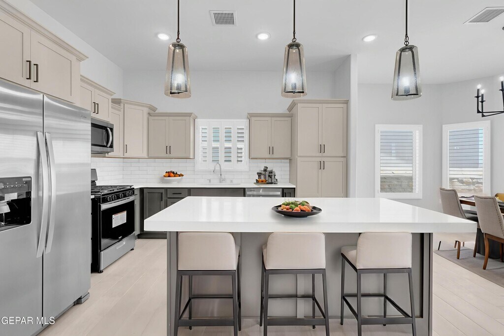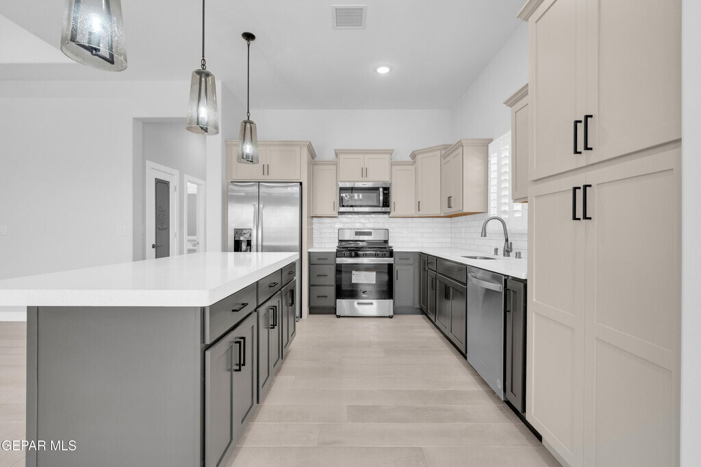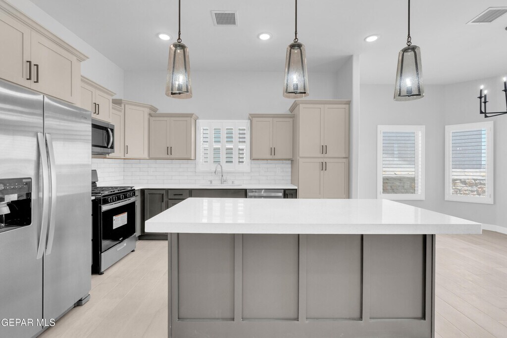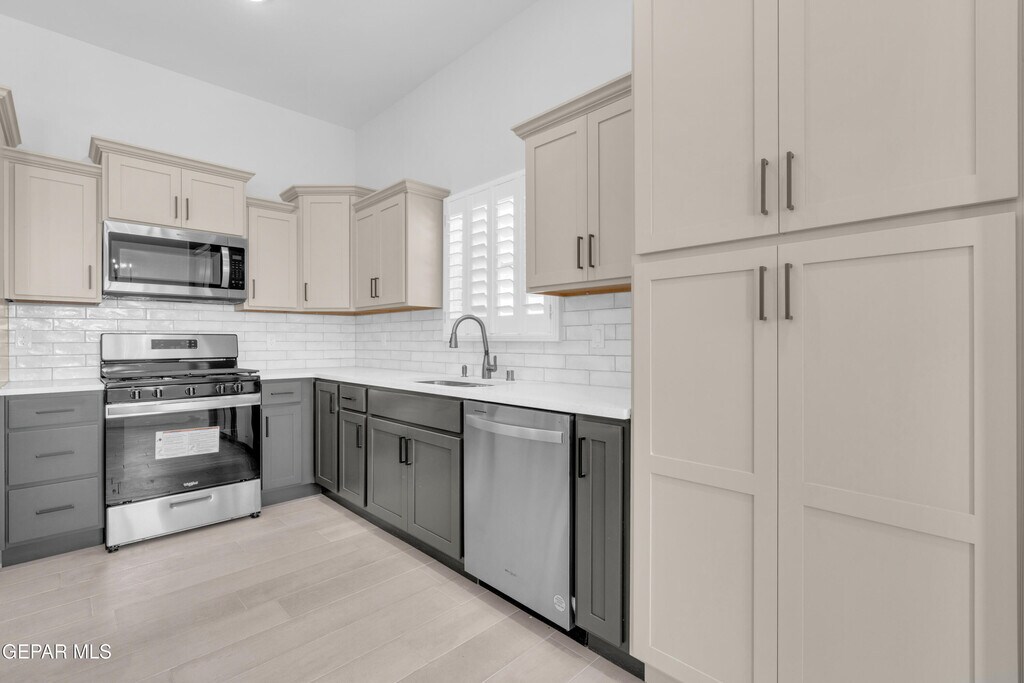 Welcome to this stunning newly built home where modern elegance and top finishes come together in perfect harmony. Thoughtfully designed for families in mind,this home features an open-concept layout that perfectly blends spaciousness & functionality. The main living areas include ample living & dining spaces with 10' tall ceilings that seamlessly connect to the gourmet kitchen which includes SS appliances,quartz countertops,backsplash tile,custom two-tone cabinetry w/ matte black hardware,an island with extra cabinetry & drawers and a walk-in pantry! The primary bedroom boasts ample space and an impressive en-suite with dual-sink vanities,a spacious closet,and a stand-up shower with gorgeous tile and a glass door. Additional features include shutters on all windows,a tankless water-heater,2-car garage and a well-sized laundry room. Located near a large neighborhood park & easy access to Loop 375 & I-10. Plenty of shopping centers,restaurants & grocery options located nearby!
