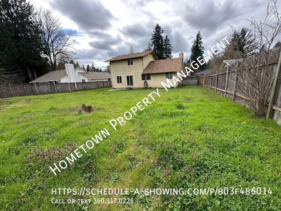 3 bed, 2.5 bath single-family home in Lacey. All bedrooms upstairs, primary bedroom features attached bathroom with shower/tub combo. Guest half-bath on ground floor. Kitchen equipped with gas stove/oven, microwave, dishwasher, and garbage disposal. Separate dining room and laundry room with washer and dryer provided "as-is." Additional features include a large fenced backyard and a 2-car garage. **NO SMOKING - NO ROOMMATES** Pets negotiable with monthly pet rent of $35 per pet. 12-month minimum lease. Great location, close to parks, shopping, and area amenities. 25 minute commute to JBLM. To schedule a no contact showing, call/text , or use the link below: