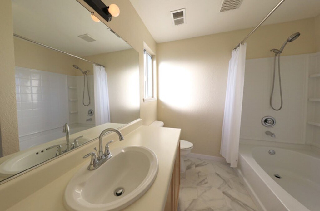 This lovely 3/2.5 two-story home is situated on a corner lot in the Heartwood neighborhood, offering 1,568 square feet of living space and a large yard. Step up onto the lovely covered porch overlooking the front yard with mature ornamental trees. The front entry leads into a foyer which has a coat closet, half bath, and a staircase to the upper level. Beyond that are the recently remodeled kitchen with plenty of counter space, an array of cupboards, a large pantry, and nice appliances. Beyond the peninsula bar is the dining nook which flows into one large living room with vaulted ceilings. At the top of the stairs are the bathroom with a tub/shower combo, the two medium sized bedrooms on the left, and the larger primary on the right. The primary bedroom has a large closet and an ensuite bathroom with a nice vanity, linen closet, and striking oval bathtub/shower combo. The large two car garage contains the washer and dryer, storage shelving, and an exit leading out to where there is an attached tool shed. There’s also nice 8x10 storage shed, lawn area, and patio area with a glass slider leading into the house. Well behaved animals will be considered. Come see what this spacious home has to offer! Garbage/recycling and lawn care are provided. Rent is $2,450 a month/Security deposit $3,700(owner is exempt from new security deposit law)/ Lease term 6-8 month to start, available 11/14. We offer showings before accepting applications, call between 9am-6pm to arrange. Texting an introduction is greatly appreciated. Amanita Mollier DRE#02211276 Complete Property Management